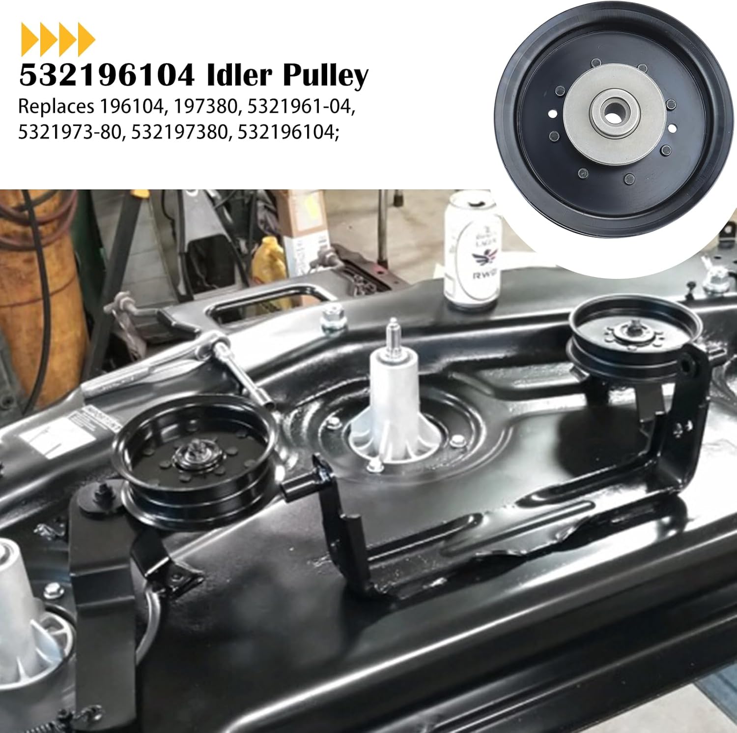 • 【REPLACEMENT】532196104 Idler Pulley Replaces Husqvarna 532196104, 5321961-04, 5321973-80, 532197380, Craftsman 196104, 197380.