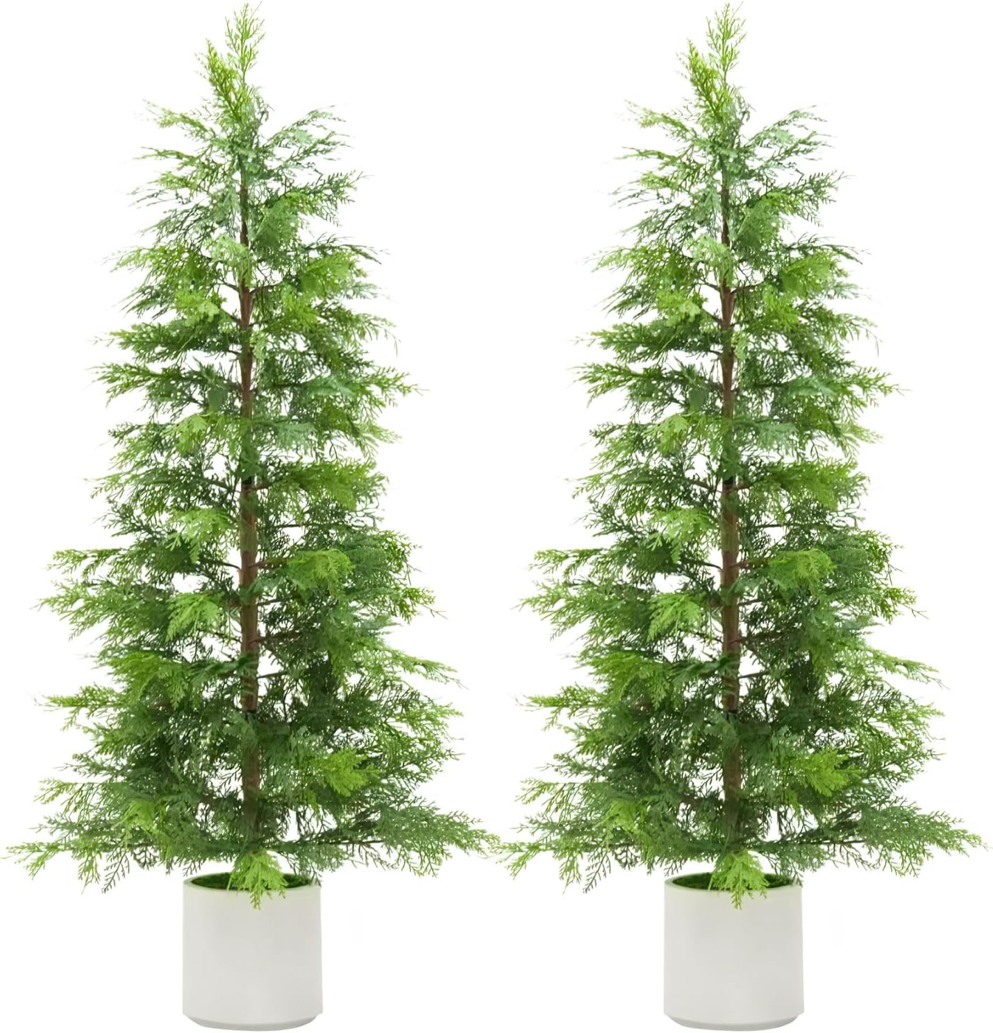 Enhance your home or office decor with this 2 Pack of 6Ft Artificial Cedar Topiary Trees, perfect for adding a touch of greenery to your front porch, entryway, living room, or apartment. These beautifully crafted faux cedar trees offer the charm and elegance of real cedar without any maintenance. Each tree is UV rated, ensuring they maintain their vibrant color and appearance even when placed outdoors in direct sunlight. The potted design makes them easy to place anywhere, providing a natural look that complements any style of decor.Key Features:- Realistic Design: Expertly crafted to mimic the lush, full appearance of natural cedar trees, bringing a refreshing and timeless aesthetic to your space.- UV Rated: Durable materials resist fading and damage from sun exposure, making these topiary trees ideal for outdoor use on porches or patios.- Low Maintenance: Enjoy the beauty of greenery without the hassle of watering, pruning, or shedding leaves.- Versatile Decor: Perfect for front porch decoration during the holidays or as year-round greenery in your living room, office, or apartment.- Ready to Use: Comes pre-potted for easy placement and immediate enjoyment.Whether you’re looking to spruce up your holiday decorations or add a permanent touch of nature indoors or outdoors, these artificial cedar topiary trees offer a stylish, hassle-free solution. Their compact 6-foot height fits perfectly in a variety of spaces, making them a versatile choice for anyone seeking elegant, maintenance-free greenery. Elevate your decor with these charming, UV resistant artificial cedar trees today.