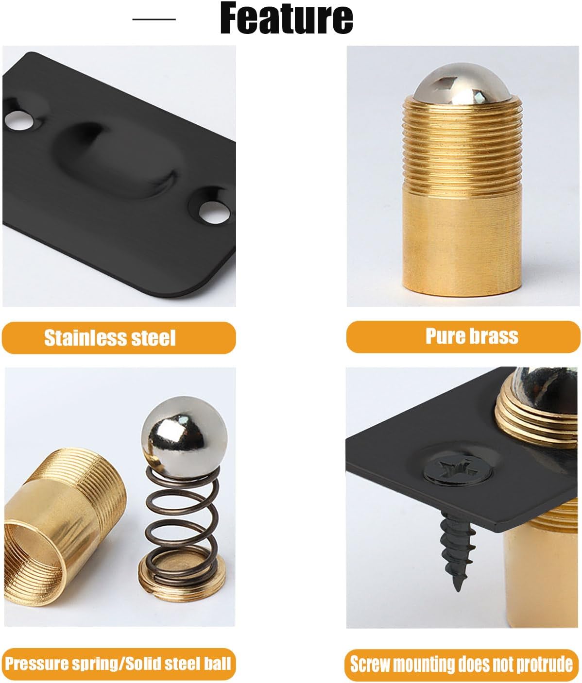 Our Closet Door Ball Catch are simple and practical suitable for study room, cabinet door, KTV hotel door, invisible door and other types of flat door Specifications: 1.Solid brass housing, durable and robust 2.Built-in high quality 65mm strong spring to ensure a service life of up to 20,000 times 3.Adjustable ball lock Size: The total length of the panel is 53mm Hole distance: 38mm Thickness: 1.2mm The specific dimensions are shown in Figure 2