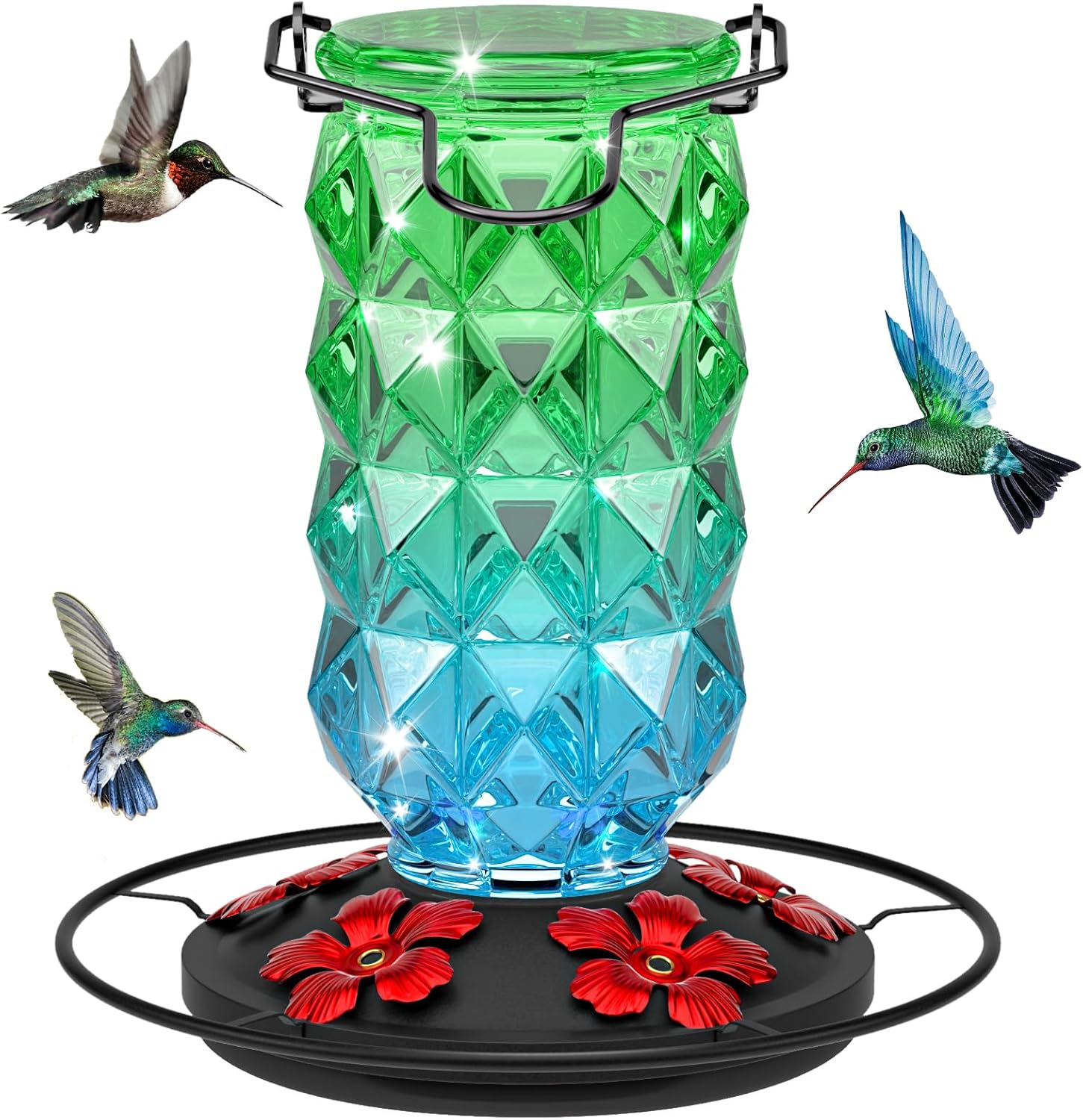 Glass Hummingbird Feeders for Outdoors, 25 Ounces Wild Bird Nectar Feeder with Perch & 5 Flower Feeding Ports Leak proof Hanging for Garden Backyard Decor, Gifts for Women Mom, Red