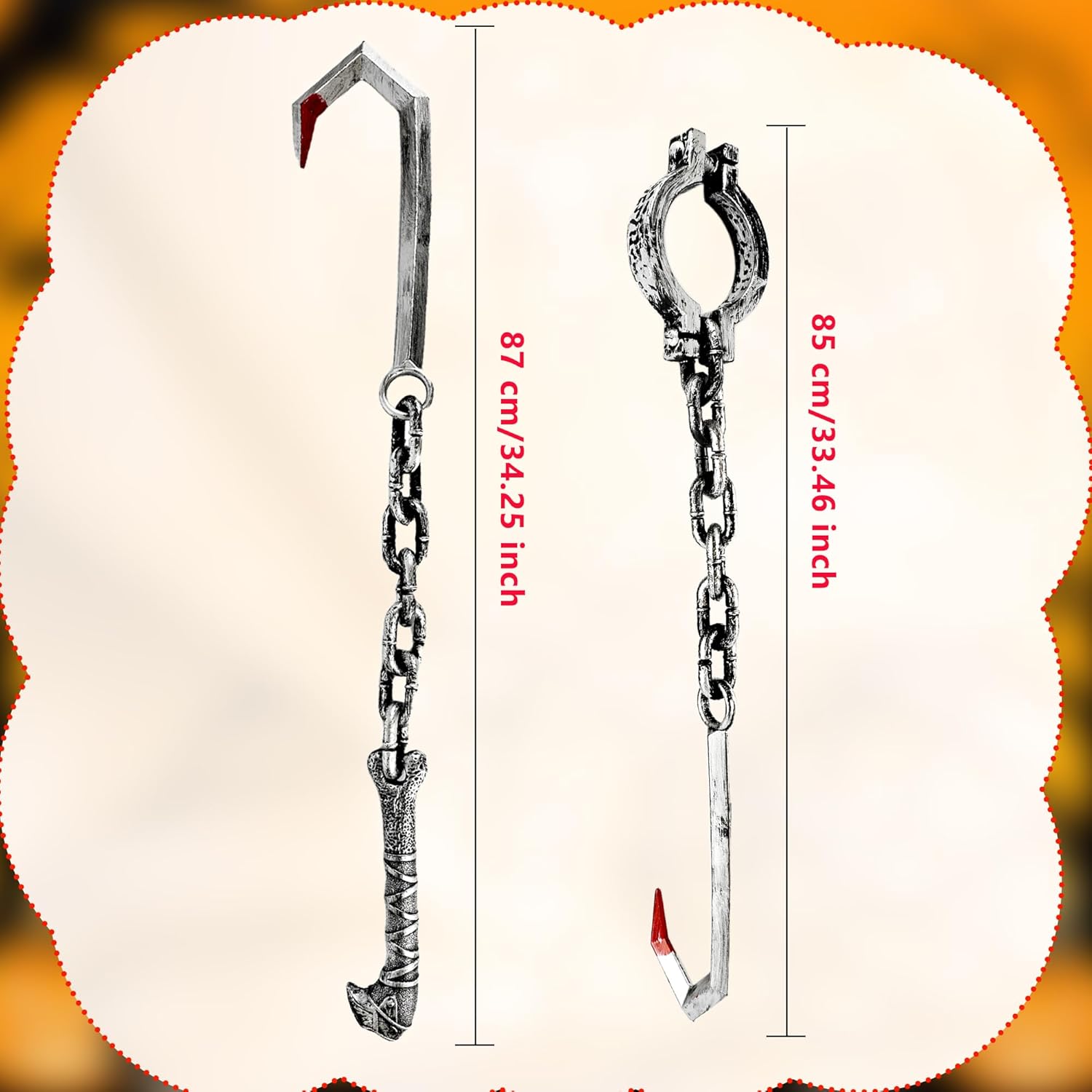 【Halloween Chain Props Wide Application】: Plastic handcuff chain props enhance haunted houses, theatrical performances, and themed parties year-round. Perfect for creating prison scenes, skeleton displays, and gothic environments. Their realistic bone and handcuff designs instantly transform ordinary spaces into captivating settings that impress guests 【Halloween Chain Props Specification】: Material: Plastic Color: As shown in the pictures Quantity: 2 pieces 【Package Include】: 2 x Halloween chains