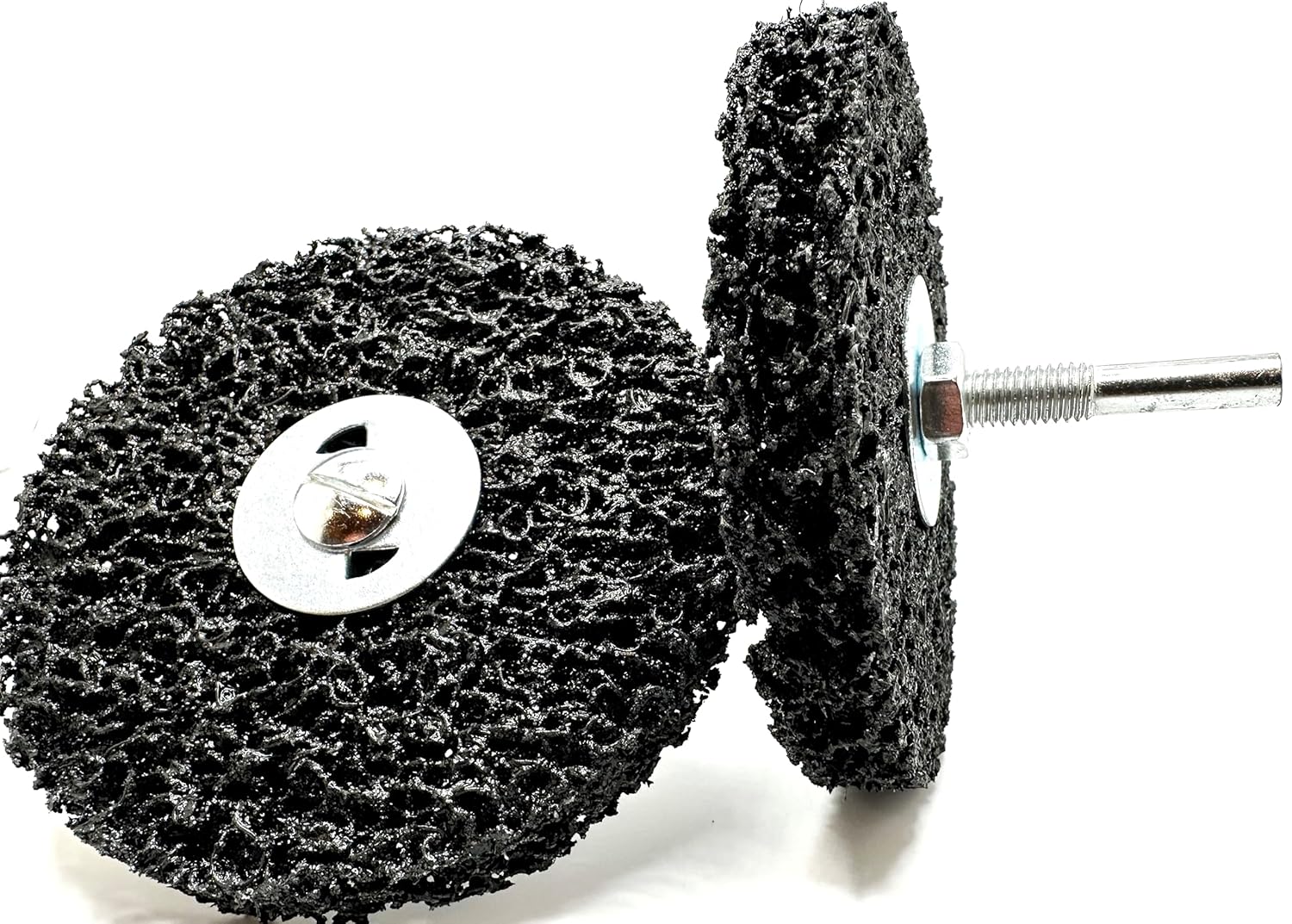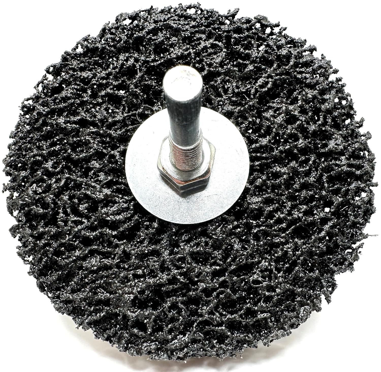 Pro-Graad Strip & Clean Discs are manufactured with high strength non-woven open webbing, resin elastomer, and extra coarse silicon carbide mineral. Its specialized integration with high-strength open non-woven nylon webbing ensures durability and wear-resistance, guaranteeing extended usage without causing damage or altering substrate geometry. Designed with a robust mesh honeycomb pattern, this disc excels in dissipating heat swiftly, significantly extending its lifespan. The non-woven nylon webbing prevents clogging during operation, maintaining consistent and reliable performance. Versatility defines its application range, effectively eliminating rust, dirt, paint, weld spatter, scaling, oxidation, and more from diverse surfaces. It's the ideal choice for tasks requiring rapid and efficient surface cleaning or preparation. For safety, adhere to recommended speeds to maximize the disc's service life. Its high-quality construction ensures thorough paint and rust removal without compromising the original surface. Prioritize safety by complying with ANSI B7.1 safety standards and using appropriate protective gear to mitigate injury risks. NOTE: These strip discs are designed for use on the edge or at an angle. Do not use flat — the shank sticks out from the bottom.