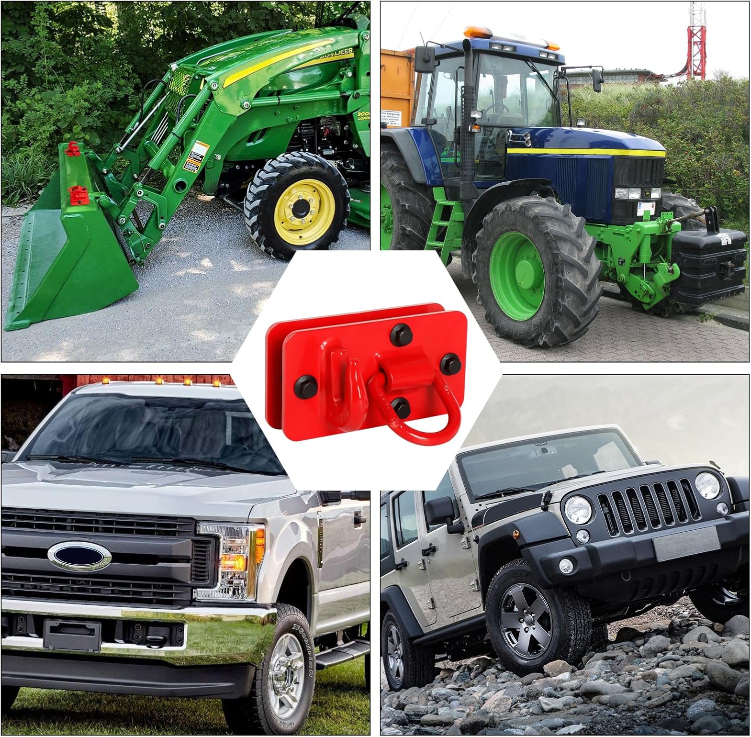 | Included Components | 2 red tractor bucket hooks + tie down ring + 8 10.9 grade bolts + nuts |