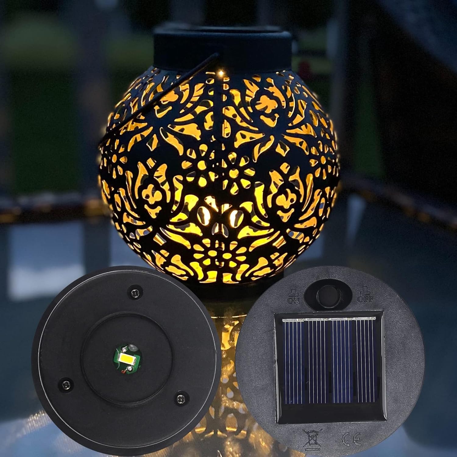 Solar Lantern Replacement Parts, Solar Light Replacement Top 【Package】 Solar Lanterns Replacement Top * 2 【Specification】 Inner ring diameter 2.44in outer ring diameter 2.76in 【Waterproof IP67】 Outdoor hanging lanterns replacement parts used superior waterproof and temperature resistance, making it the perfect solar decoration for the outdoors, without worrying about the various bad weather 【Power supply】 If you receive the Solar Lanterns Replacement Top Parts and find they do not light, please put them in the sun for charging for a period of time. Please note: each Solar Lanterns Replacement Top Part has an on / off switch under the cover to turn it on before the solar energy is charged. Since the charging effect of solar panels depends on the sunlight, the time and brightness of LED lights will be affected by weather, season, location, etc. If there is no sunshine for a long time, it can also work on AAA batteries. 【Easy to Use】 1. Find the on / off switch under the cover and turn it on. The light will be on in the dark and off in the daytime by the automatic opening/closing of the light sensor (built-in cover). 2. If the light is not on, please put the cover in the sun for charging. 3. Cover the lantern can and hang it anywhere you like. It is recommended to use it in direct sunlight. 4. Solar Lanterns Replacement Top cover can be used separately for DIY, such as inserting the solar lamps into other things you want.
