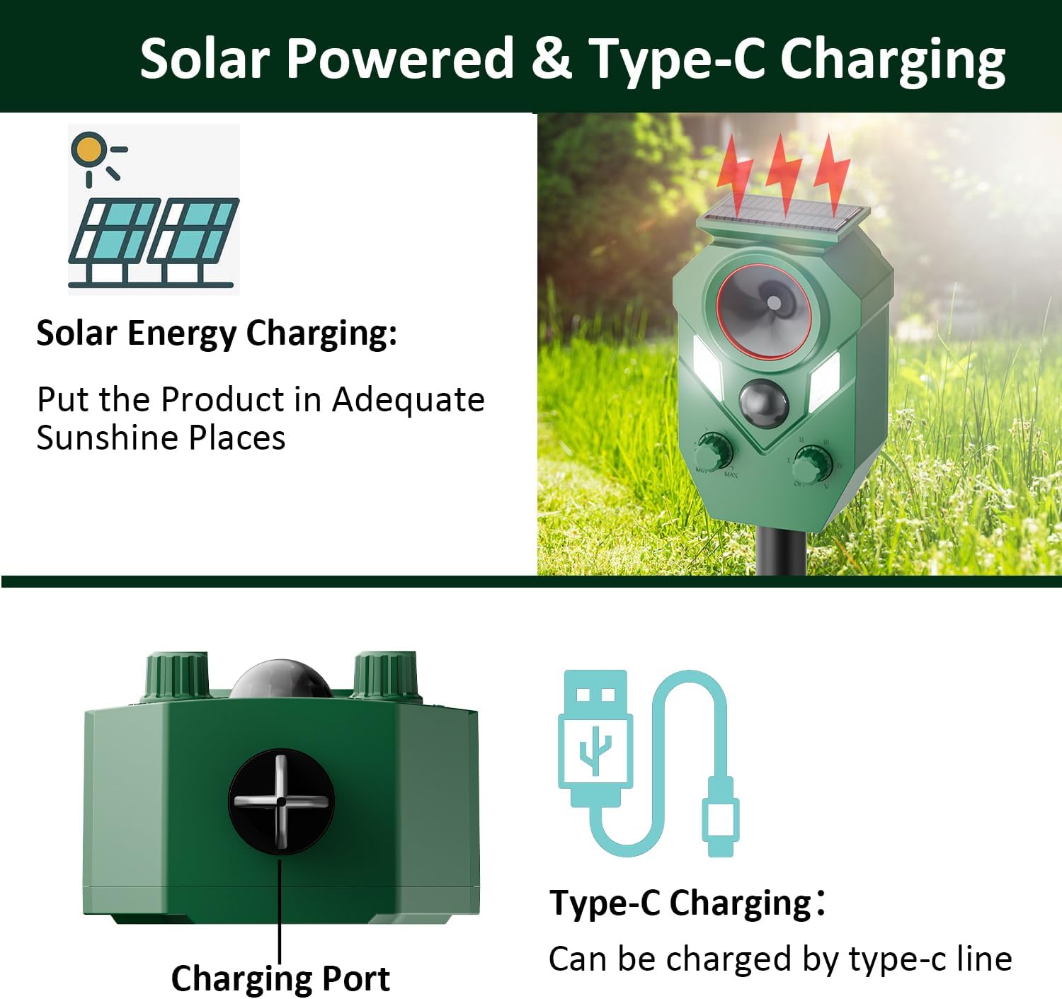 Protect your outdoor space with this Solar Ultrasonic Animal Repeller Outdoor. Designed with motion sensor activation, it combines ultrasonic sound waves and flashing LED strobe lights to deter a variety of animals including deer, raccoons, cats, dogs, squirrels, skunks, and birds.