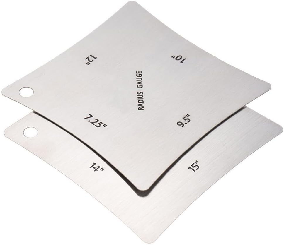 Product description Features:and .Radius Gauges allow you to quickly take measurements of guitars you are working on,feature all the commonly used radius measurements.You can use them to check your progress when sanding a radius in to a new fretboard, marking out the top of a new bridge saddle or nut, or checking an existing guitars fretboard or bridge radius for set ups.gauge has 7.25", 9.5", 10", and 12" radius edges, the second has 14", 15", 16", and 20".Specifications:Color: SilverMaterial: Stainless Steelsize: Item size: 8.7 * 8.7 * 0.2cm / 3.4 * 3.4 * 0.07inchPackage Contents:1 x guitar radius gauge 7.25 inch-12 inch1 x guitar radius gauge 14 inch-20 inch Manufacturer Contact Information no