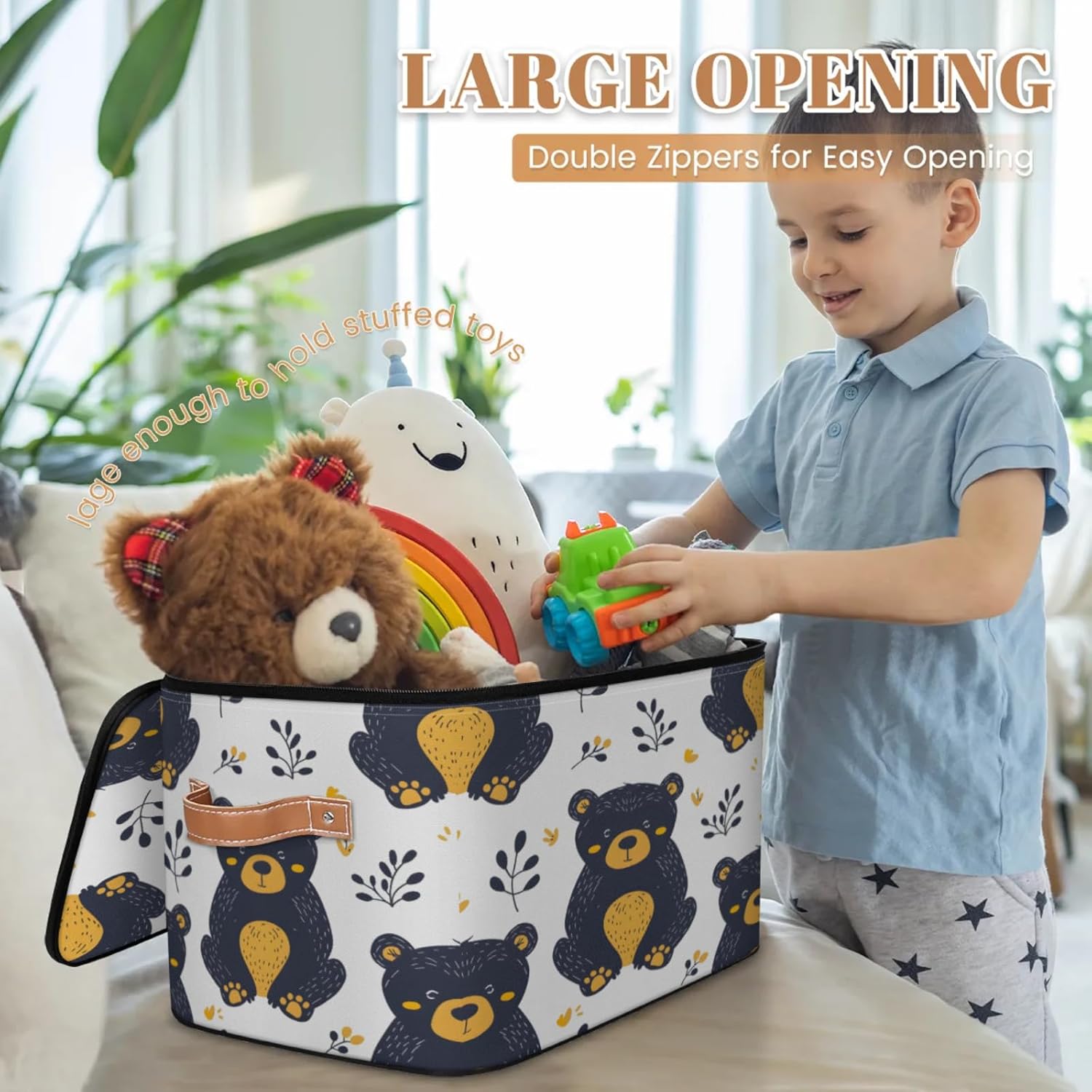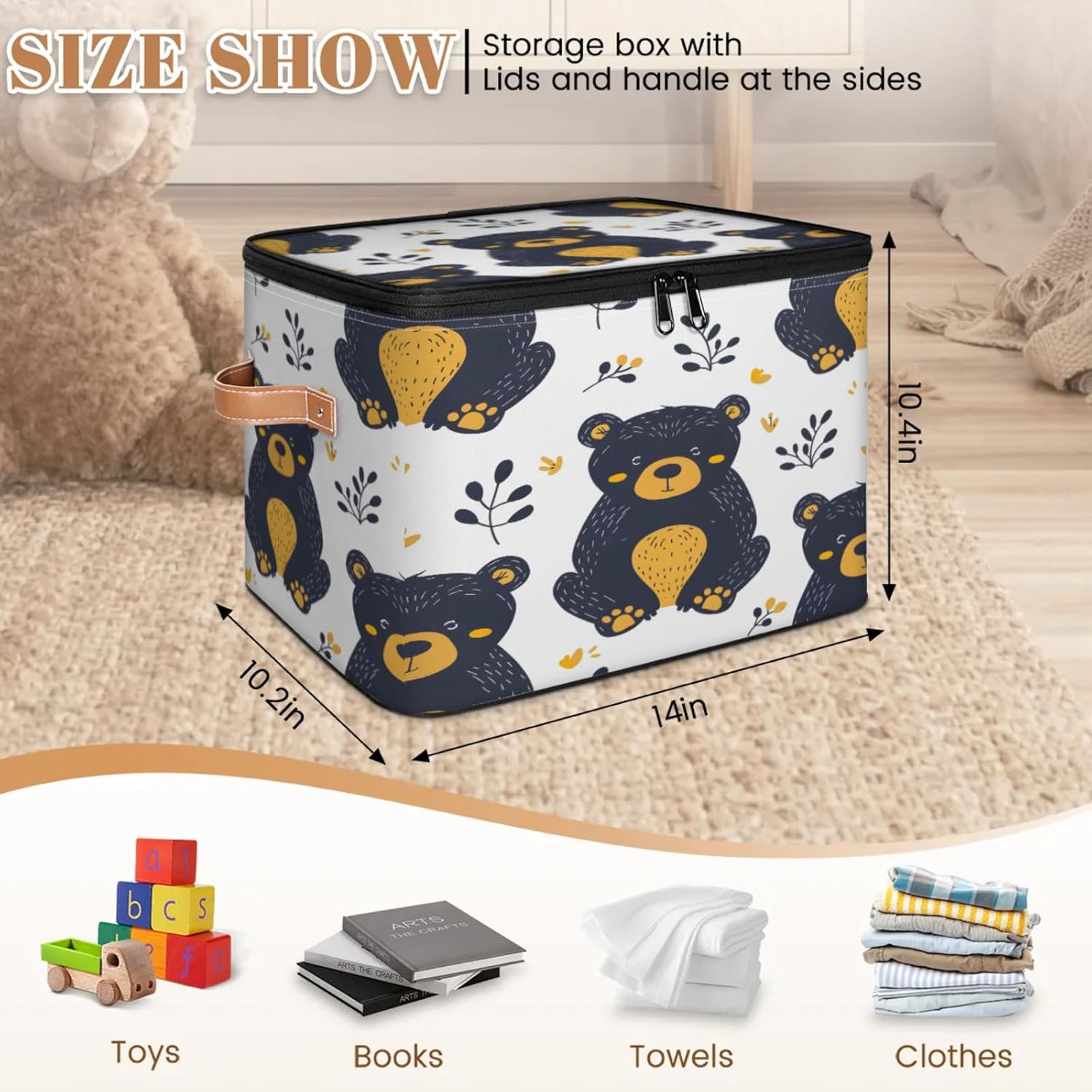 Stay Organized with Our Premium Fabric Storage Bin! Keep your home, closet, or office clutter-free with our large fabric storage bin with a double-zippered lid. Made from high-density 100% polyester (2mm thick), this storage box is both lightweight and durable, ensuring long-term use without wear and tear. The reinforced leather handles make it easy to carry, while the built-in wire frame keeps its shape whether full or empty. Why Choose Our Storage Bin? ✔ Space-Saving Foldable Design – Collapses flat when not in use, perfect for small spaces. ✔ Easy-Access Double Zipper Lid – Quickly store and retrieve items without hassle. ✔ Multi-Purpose Organizer – Ideal for clothes, toys, blankets, toiletries, pet supplies, and more. ✔ Perfect for Any Room – Fits seamlessly in kitchens, bathrooms, nurseries, dorms, RVs, and cars. ✔ Simple Maintenance – Hand wash or spot clean for easy care.