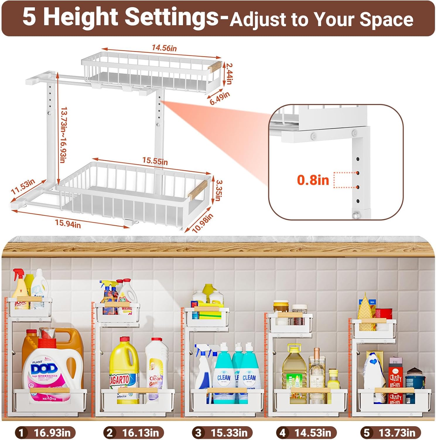 | Additional Features | 5-Level Adjustable Height for Flexible Storage, Durable Heavy-Duty Carbon Steel Frame, Smooth Double Slide-Out Drawers, Space-Saving 2-Tier L-Shape Design, Enhanced Stability with Suction Cups & Nano Adhesive |