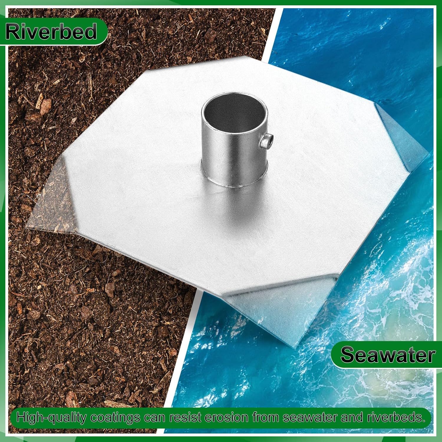 Features: Large size: The large 11" x 11" base and pointed corners effectively distribute weight and anchor dock legs, providing vital stability and lateral support for floating docks, stationary docks, and piers. Easy Installation: Installation is straightforward thanks to 7/16" pre-drilled holes designed for 3/8" carriage bolts, allowing for a secure and stable connection between dock legs and the river or lake bottom. Specifications: Material: galvanized steel Color: silver Size: 11 x 11 inches/ 29 x 29 cm Package includes: 2 x Stationary Dock Base Plate Notes: Manual measurement, please allow slight errors on size. The color may exist a slight difference due to different screen displays.