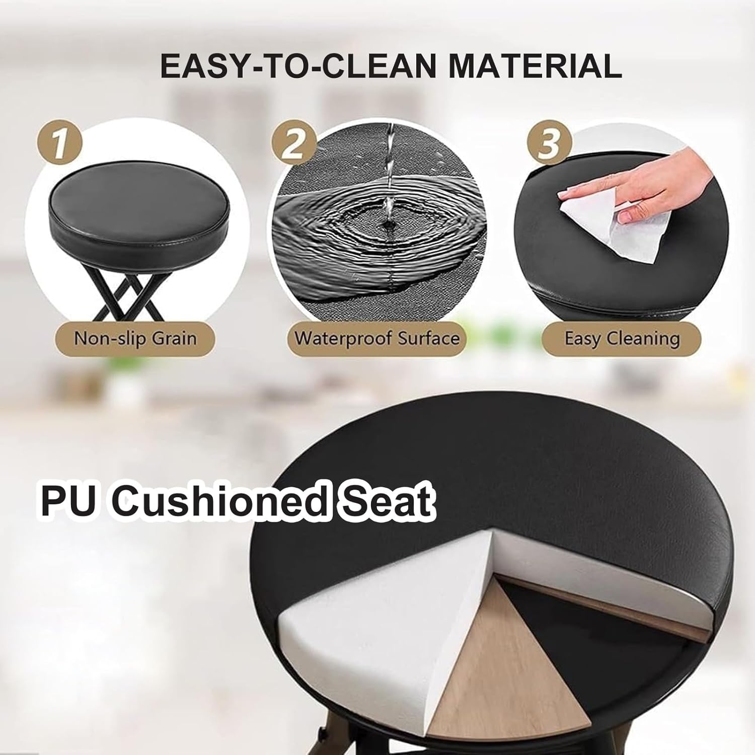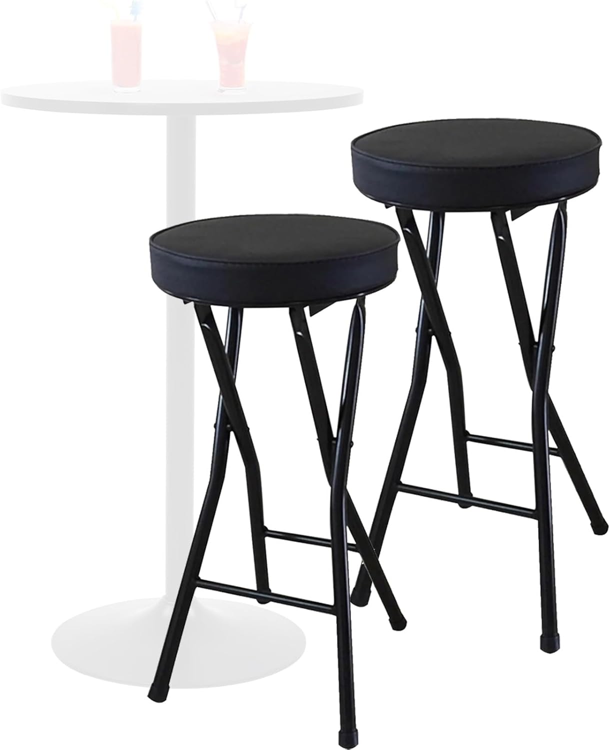 This foldable stool is designed to be lightweight and compact, making it easy take anywhere. When folded, the easily fits into most vehicles for parties or gigs. No assembly required, just pull push unfold fold chair. not in use, they can folded stored, saving valuable space. Material: PU, sponge, metal Expanded size: 34x34x63cm/13x13x25inch Seat height: 63cm/25inch Suitable high tables s of 90-100cm/35.4-39.4inch Maximum load-bearing capacity: 136kg/300lbs Colors: White, Black Packing list: folding x2 Notice: Manual measurement, please allow slight errors size. Colors may vary slightly due different screen displays.