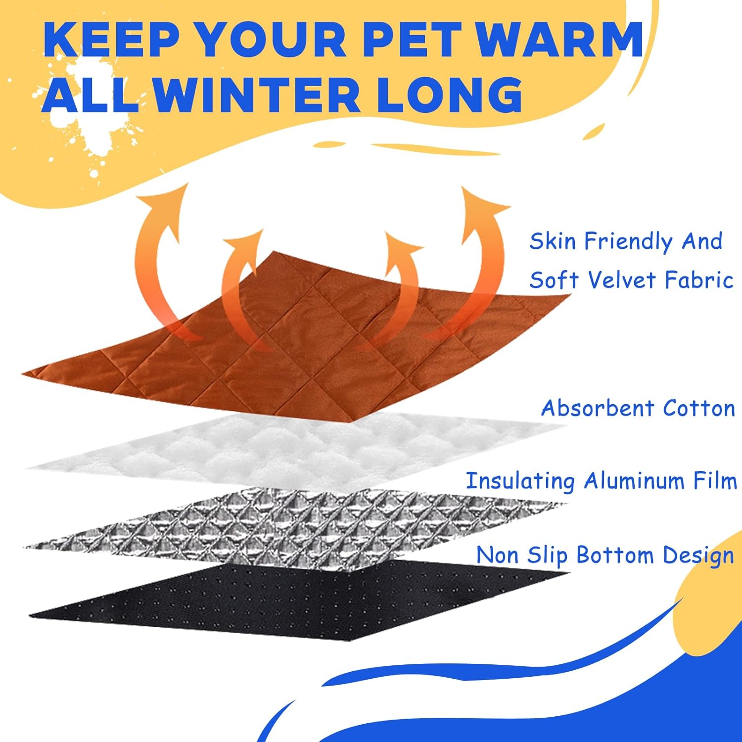 Description:1.This Self Warming Pet Mat is engineered to provide your indoor cat with gentle warmth by reflecting their own body heat through advanced self-heating technology, eliminating the need for external heat sources and making it energy-efficient and safe. 2.The cat blanket comes in three sizes, the mat makes a perfect balance of ample resting space and portability, fitting seamlessly into cat beds, crates, or cozy corners. 3.This pet bed features a super soft plush fabric paired with high-quality filling, inviting surface for cats to relax on, while the machine washable design makes upkeep simple and convenient. 4.Ideal for year-round use, especially in cooler indoor settings, this cat warming pad enhances your pet's comfort naturally while providing hassle-free maintenance for pet owners who value both functionality and quality.Introduce:Name: Self Heating Cat MatColors: Black, Gray, BrownMaterials: Velvet, Absorbent Cotton, Insulating Aluminum Film, Anti-slip DotsFeatures: Cozy and warm, no electricity neededSuitable for: Pets, including medium to large-sized cats, dogs, rabbits, etc.Product Specifications: S:Length 50cm/20in, Width 35cm/14inM:Length 70cm/28in, Width 50cm/20inNote:Manual measurement, please allow slight errors on size.The colors may exist slight difference due to different screens.Package Including1 * Self Warming Pet Mat