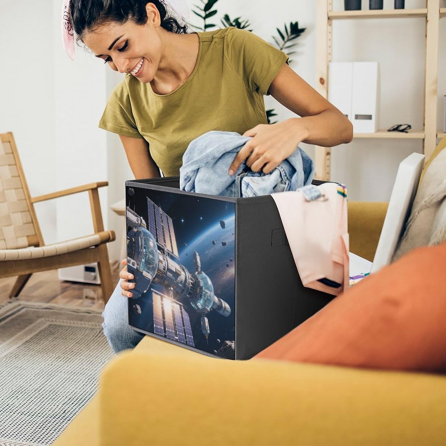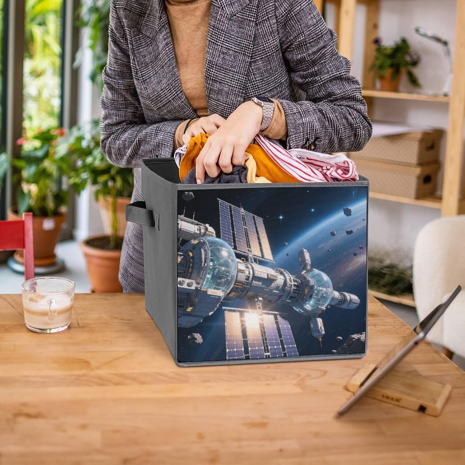 Made of durable, water-resistant 2-piece Oxford Cloth for long-lasting use. Tear-resistant for daily use. The lidless design allows for quick access to items, perfect for storing frequently used items such as clothing or blankets. Sturdy double handles on both sides make it easy to carry between rooms. The reinforced, removable base provides good structure and stability. Simply disassemble for compact storage or easy cleaning, the 10.6x10.6x10.6 inch square size has plenty of space to store large items and fits neatly under the bed, on a shelf or in a closet. Use it in the bedroom, living room, garage, or even as a stylish laundry basket.