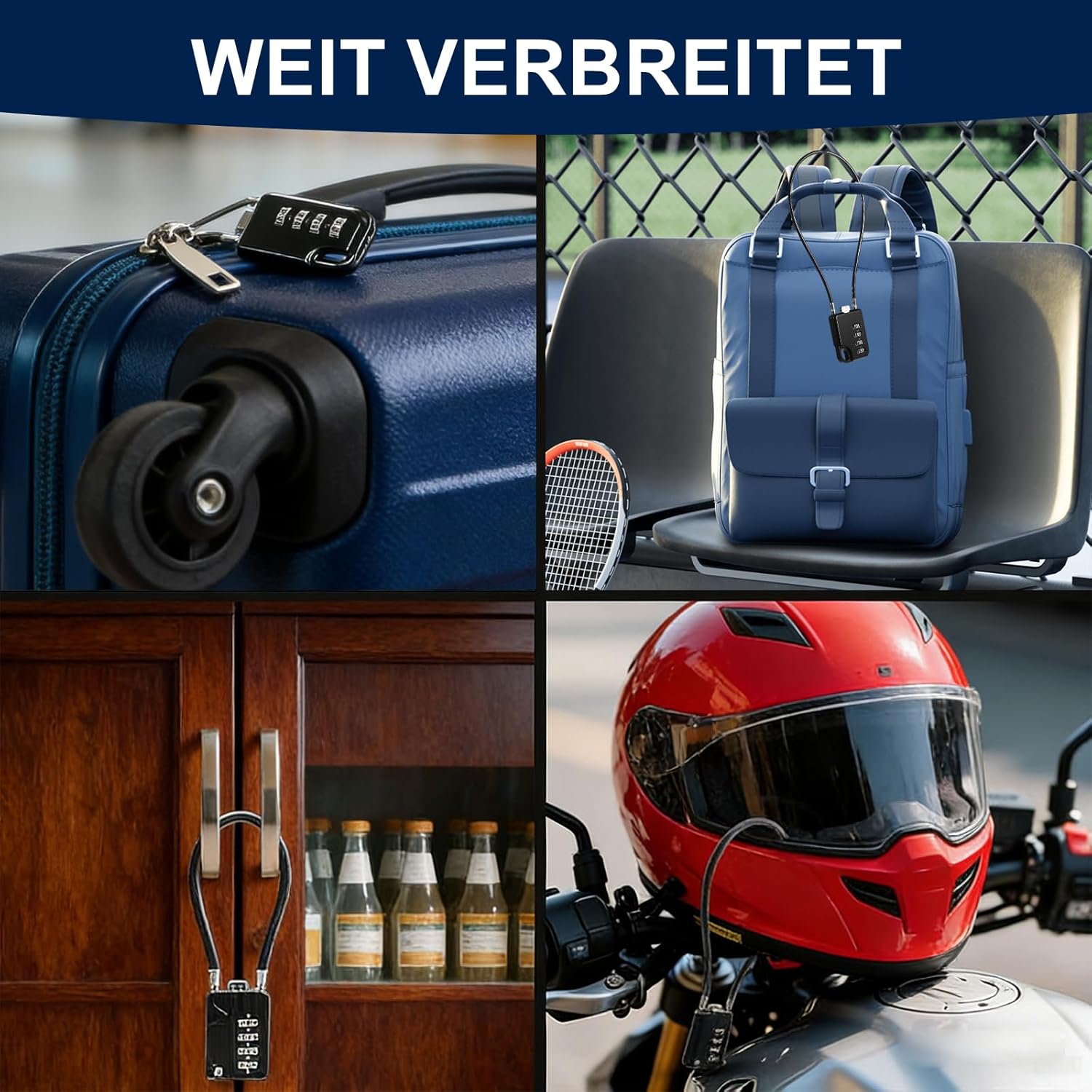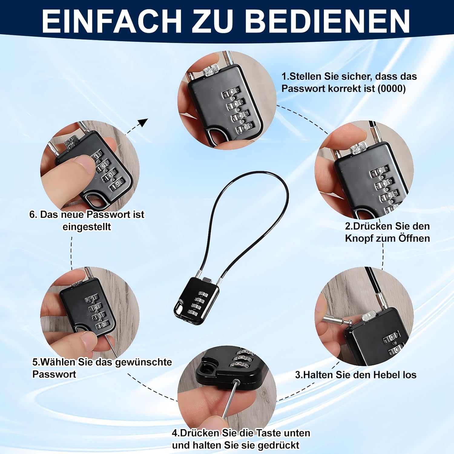 Feature: 1. This cable lock combination lock in a set of 2 impresses with its sturdy zinc alloy, ABS plastic and a 30 cm long, 3 mm thick black wire rope. It is flexible, rust-proof, weather-resistant and can hold up to 50 kg. The durable construction is suitable for indoor and outdoor use and withstands daily use. 2. This 4-digit combination lock offers 10,000 possible combinations for high protection. The individually adjustable code is easy to use and change, keyless and practical. The 30cm rope is flexible enough for many fixings, compact and easy to carry. 3. This combination lock is universally applicable for suitcases, backpacks, helmets, bicycles, scooters, cupboards and lockers. Ideal for travel, school, fitness, outdoor and everyday use. The set of 2 allows double protection or replacement, the black design is discreet and modern. Specification: Material: zinc alloy. Size: 30 cm. Colour: black. Package includes: 2 x cable lock combination lock