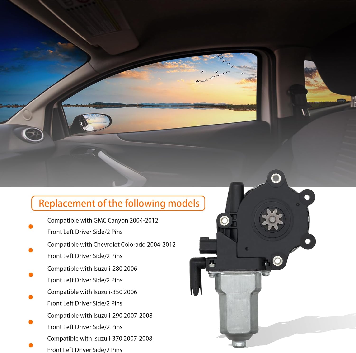 HXHAUTO has extensive experience in power window motor . Through careful design and remanufacturing by our team, we can improve performance and durability while using better materials and efficient technology, so that you can meet the demands of high quality and low cost while shopping happily.Do your Windows not go up or down properly?If your car window have can not lift, pause, weakness, abnormal sound and other problems, may be your Window regulator or window lift motor damage caused by failure, you need to replace in time,this will bring convenience to your life.Product informationAccessories type: Power Window Motor Installation position: Front Left Driver Side Anti-Clip Function Included: NO Terminal of connector:2 Pins Mounting Type: Bolt On Window Regulator Included: NO Quantity Sold: 1 Piece Reference Number:15922914 19167713 8-19167-713-0 88980985 42-1046 742-448Replacement of the following modelsCompatible with GMC Canyon 2004-2012 ---Front Left Driver Side Compatible with Chevrolet Colorado 2004-2012 ---Front Left Driver SideCompatible with Isuzu i-280 2006 ---Front Left Driver SideCompatible with Isuzu i-290 2007-2008 ---Front Left Driver SideCompatible with Isuzu i-350 2006---Front Left Driver SideCompatible with Isuzu i-370 2007-2008 ---Front Left Driver SideTips:Please pay attention to your model, year and installation position before purchase.