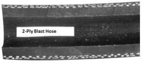 2-Ply hose is used in industrial settings where external scuffing is expected. It can be used with all common blast media. 2-Ply blast hose has a durable outer casing and is more flexible than 4-ply hose. 2-Ply blast hose accepts properly sized couplings and nozzle holders. The coupled hose can attach to any blast machine rated at up to 150 psi. 2-Ply hose is widely used in shipyards and railyards because it stands up to external abrasions from being dragged about the blast site.