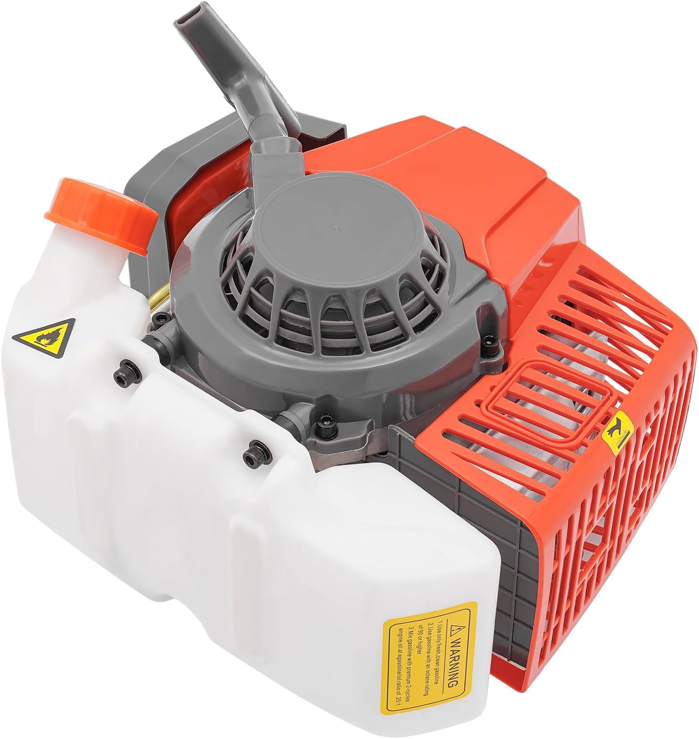 ApplicationIt is suitable for residential or commercial lawn and garden equipment, weed whackers, agricultural equipment, construction, industrial equipment, and other applications.SpecificationColor: Red, GreyStyle: ModernMaterial: Plastic, AluminumAssembly Required: NoStarting Method: Hand-pull StartEngine Type: Two-stroke, Air-cooled, Single-cylinderFuel Type: Mixed Oil (Gasoline: 2-stroke Engine Oil = 25:1)Output Type: ClutchMaximum Power: 2.2kWSpeed: 7500r/minDisplacement: 63.3ccFuel Consumption Rate: 544g/kW.hFuel Tank Capacity: 1.3L/ 0.34galContinuous Working: About 1hGross Weight: 4.8kg/ 10.58 lbs Package Size: 32*29*23 cm/ 12.6*11.42*9.06 inProduct Size: 27*10*30 cm/ 10.63*3.94*11.81 inPackage Included1*2-Stroke Gasoline EngineNotes1. Please read the product label carefully before use.2. Please note that this product must use two-stroke oil, not four-stroke oil or other oils, otherwise, it will easily lead to pulling the cylinder and other problems.3. Please do not use this product near sources of ignition.4. Please allow the slight color difference caused by the shooting light and the 1-3 cm error due to manual measurement, and make sure you do not mind before ordering.