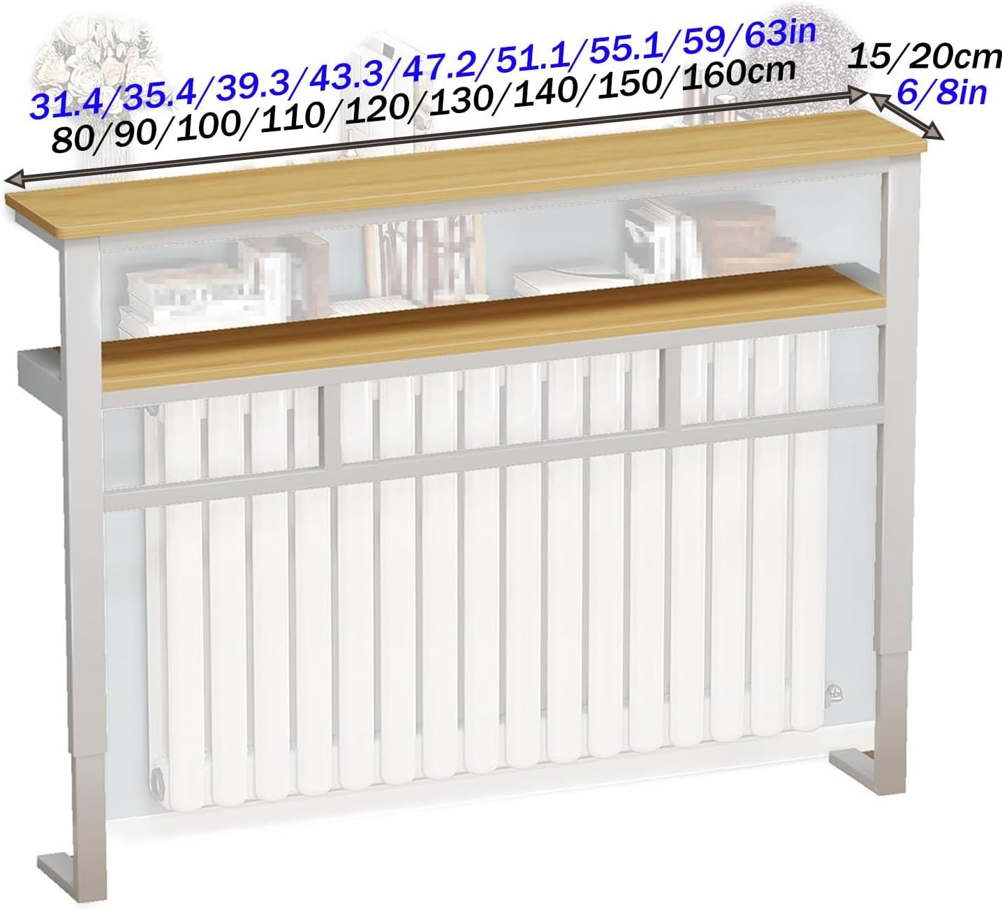 This versatile radiator shelf is designed with 6''/8'' deep double shelves, providing ample storage for decorative items, books, or plants. With a compact footprint of less than 0.36 square meters, it’s perfect for small apartments and tight spaces, maximizing your space utilization effortlessly. The open design promotes unobstructed airflow over the radiator, ensuring optimal heat circulation while protecting your walls from dust and smoke stains. Assembly is straightforward and quick, requiring only the connection of the wood board and metal brackets, making it user-friendly for everyone. Crafted from high-quality metal and wood, this radiator shelf showcases a simple and modern aesthetic, available in a natural color that complements various home décors. Ideal for multiple settings, this shelf fits perfectly in your living room, balcony, office, or bathroom, providing functionality and style wherever you need it. The added benefits of flat surface storage and dust protection make it an essential addition to your home organization solutions. Product Specifications: - Material: Metal and Wood - Style: Simple and Modern - Color: Natural - Assembly Required: Yes - Function: Storage, dust protection - Applicable Scenarios: Living room, balcony, office, bathroom Package Content: 1 x Radiator Shelf (decorations not included). Please note: Manual measurement may allow for a 1-3 cm error. Actual item may differ from images due to lighting and display factors.