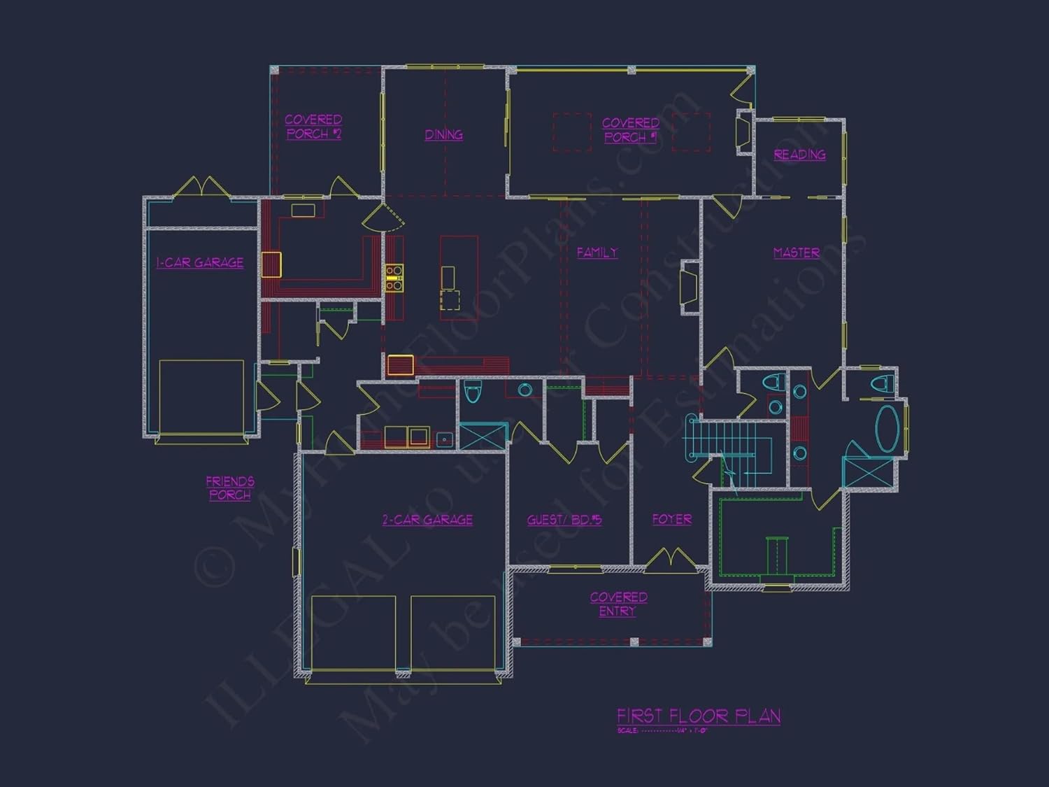 Width: 81′-2″Depth: 65′-9″Htd SF: 4,138Unhtd SF: 1,360Elegant 2-Story House Design with Angled Garage & CAD BlueprintsExplore this stunning 2-story house design with 4,138 heated sq. ft., 4 bedrooms, 5+ bathrooms, and an angled garage—includes CAD files, structural engineering, and unlimited builds.This European-inspired house plan offers a perfect mix of luxury and functionality. Designed for modern living, it delivers spacious elegance, smart architectural flow, and timeless curb appeal.Key Features of the Home PlanLiving Areas - Heated & UnheatedHeated area: 4,138 sq. ft. spread over two thoughtfully designed floors.Unheated extras: Covered porches, angled 3-car garage, and bonus attic storage.Bedrooms & Bathrooms4 spacious bedrooms, including a luxurious first-floor Owner Suite with a walk-in closet and deluxe bathroom.5+ bathrooms, featuring Jack and Jill configurations and elegant powder rooms for guests.Interior Highlights10ft+ ceilings on the main level and 9ft+ upstairs for a grand, airy feel.Open floor plan links the gourmet kitchen, breakfast nook, and great room. Explore open-concept designs.Kitchen island with seating and walk-in pantry for effortless entertaining and storage.Fireplace creates a cozy gathering spot in the spacious great room. Browse fireplace homes.Dedicated study, mudroom, bonus room, and recreational spaces provide function and flexibility.Garage & Storage DetailsGarage Bays: 3-car garage with angled front entry for curb appeal and easy access.Garage Type: Attached garage with split layout for separation and storage flexibility. See split garage options.Storage: Includes mudroom cubbies, walk-in closets in all bedrooms, and upstairs bonus storage.Outdoor Living FeaturesCovered front and rear porches designed for year-round comfort and shaded relaxation.Durable brick exterior for classic European elegance and long-term durability.Architectural Style:
