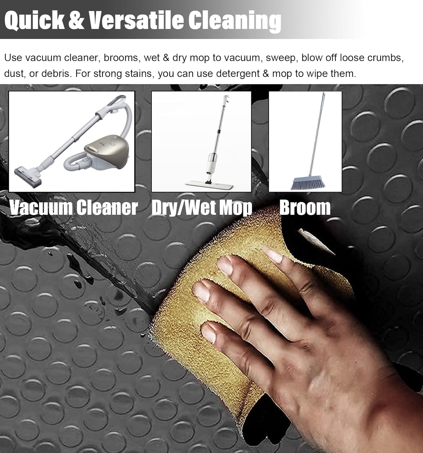 - Tough enough to be used in the garage, attractive enough to be used everywhere; basements, laundry rooms, decks, trailers, vehicles, boats, schools, stores, workshops, warehouses, exercise rooms, offices and equipment rooms. Anywhere you need attractive high quality flooring that protects.- SpecificationsColor: BlackMaterial: PVC VinylPattern: Dot Mat Size: 50/60/70/80/90/100/110/120/130/140/150cm WideMat Thickness: 0.12inch / 3mm- Features Thick and heavy duty. Rubber odor resolves quickly. Tough and Tear Resistant, High flexibility, will not break when pulled.Easy to Clean, can use vacuum cleaner, brooms and wet & dry mop on cleaningEasy to cut you can cut out any size with scissors to fit different space sizes.- Package Contents:1 x Floor Mat- Notice: 1. If it smells bad, please put it in a ventilated place. The smell was gone after 3 days.2. Items may slightly differ from photo in terms of color due to the lighting or your monitor's display.3. Slight measurement error may exist due to manual measurement being used.