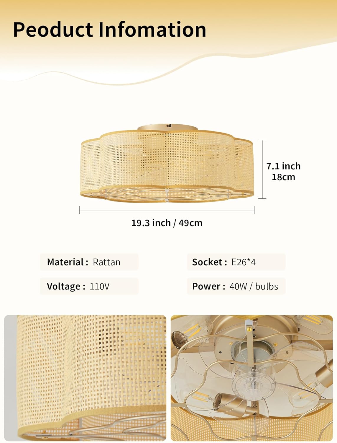 | Included Components | 20 Inch Boho Ceiling Fan with Light Caged Rattan *1, Installation, Mounting Hardware, Remote Control *1 |