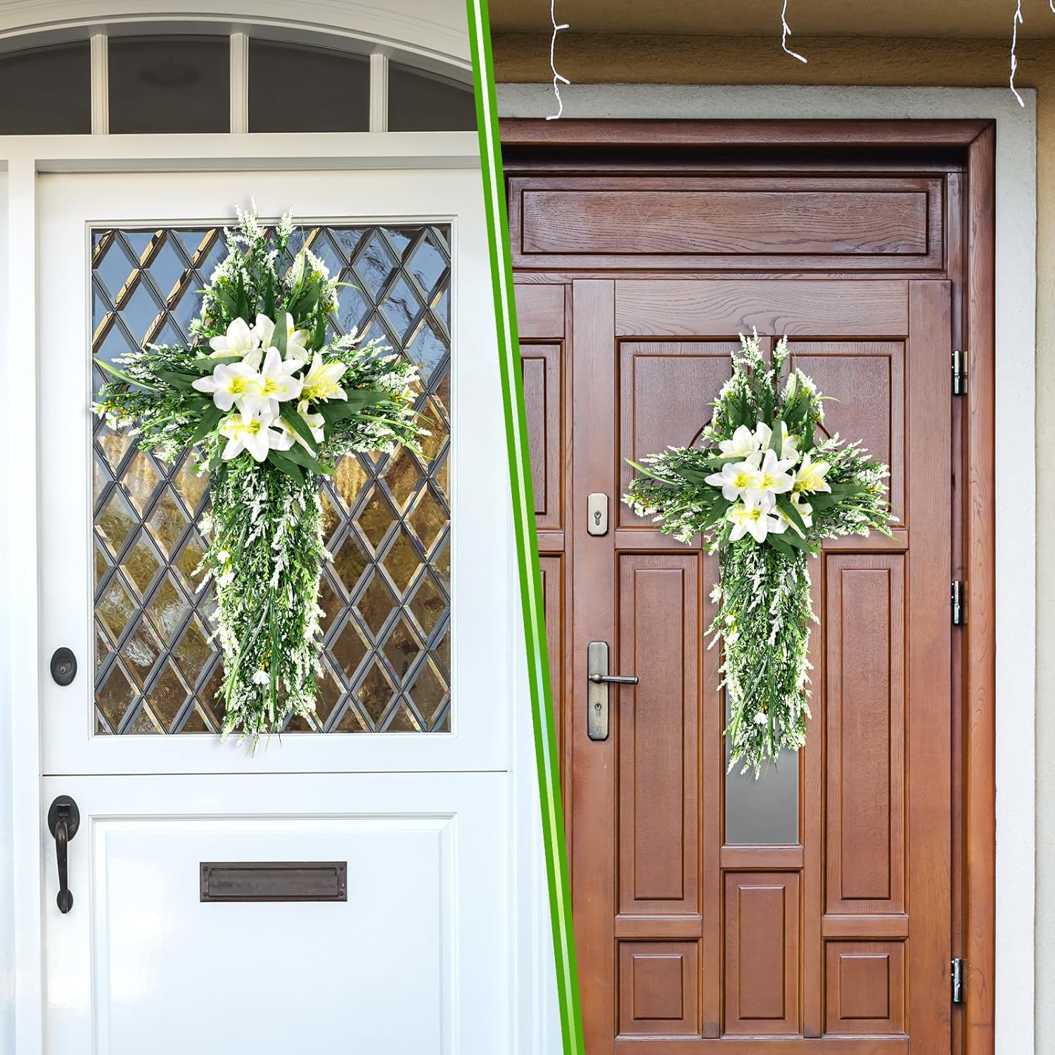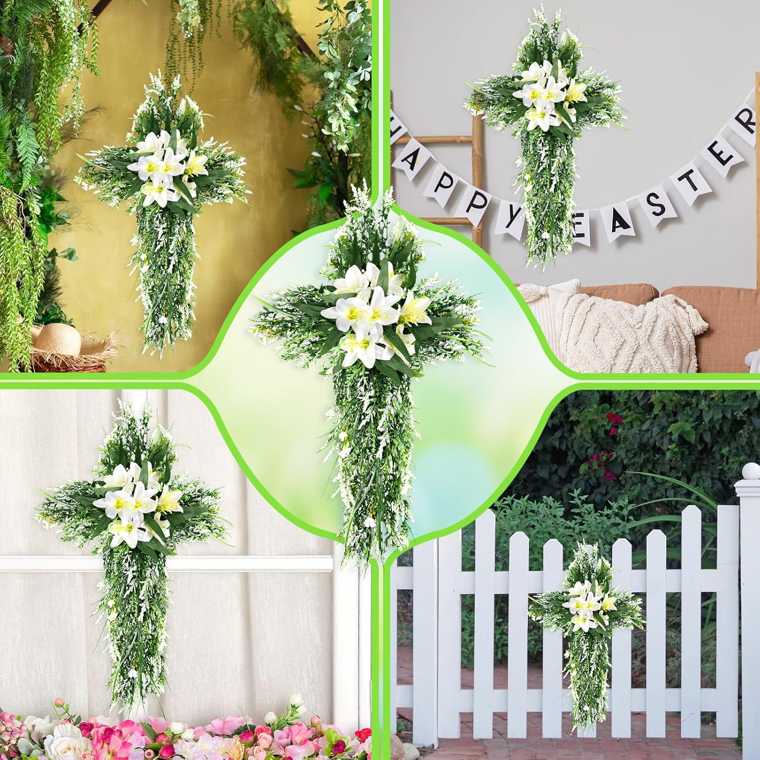 Features: Exquisite Design: This front door cross wreath combines a classic cross shape with white Easter lilies, vibrant green leaves, and delicate accents. The flowers are lush and beautiful, blending religious reverence with spring charm for a bright and refreshing decorative piece. Wide Application: This Easter Lily Cross Wreath is perfect for spring holidays, Christian parties, indoor/outdoor decor—including front doors, walls, windows, and fireplaces. It’s also a thoughtful gift for friends and family, adding a festive and reverent vibe to any home. Specifications: Material: Plastic Theme: Easter Color: As the picture shows Size: As the picture shows Count: 1 Pcs Notes: The color may exist a slight difference due to different screen displays.