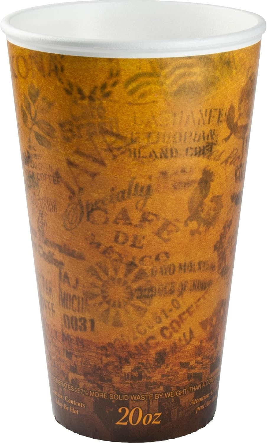 DCC20U16ESC Features: -Polystyrene cups for hot and cold beverages. -Seamless sidewall reinforces cup durability. -ThermoThin core helps maintain hot and cold beverage temperature. -Molded rolled lip keeps lids secure. -No need for double-cupping or cup sleeves. -Color: Brown/Black. Product Type: -Everyday. Material: -Foam. Country of Manufacture: -United States. Capacity: -20. Dimensions: Overall Product Weight: -10 lbs. Individual Cup Height - Top to Bottom: -5.2". Individual Cup Width - Side to Side: -1". Individual Cup Depth - Front to Back: -1".