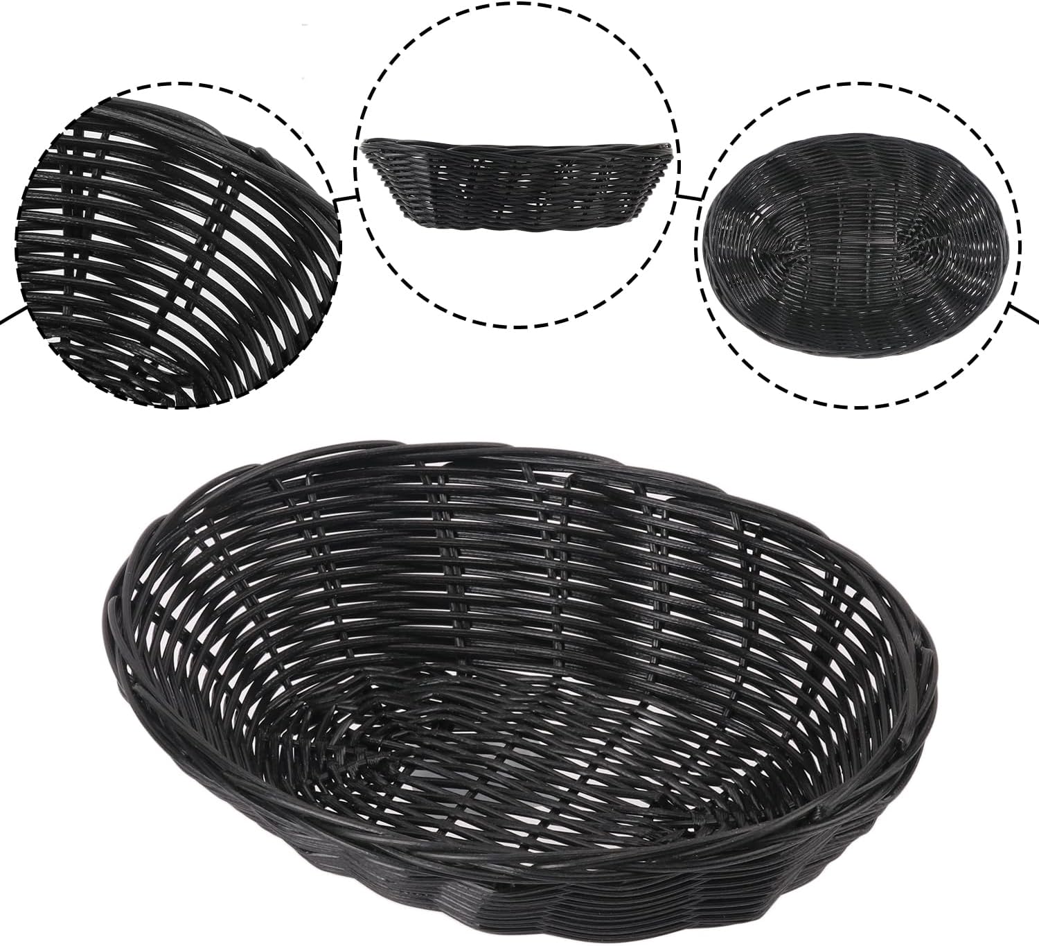 • 【Perfect Size】Geytetqi Black Oval Poly Wicker Baskets measure9.2 X 6X 2.4 inch, ideally sized for storing or serving fruits, bread. These plastic oval bread baskets are stackable, saving space when not in use.