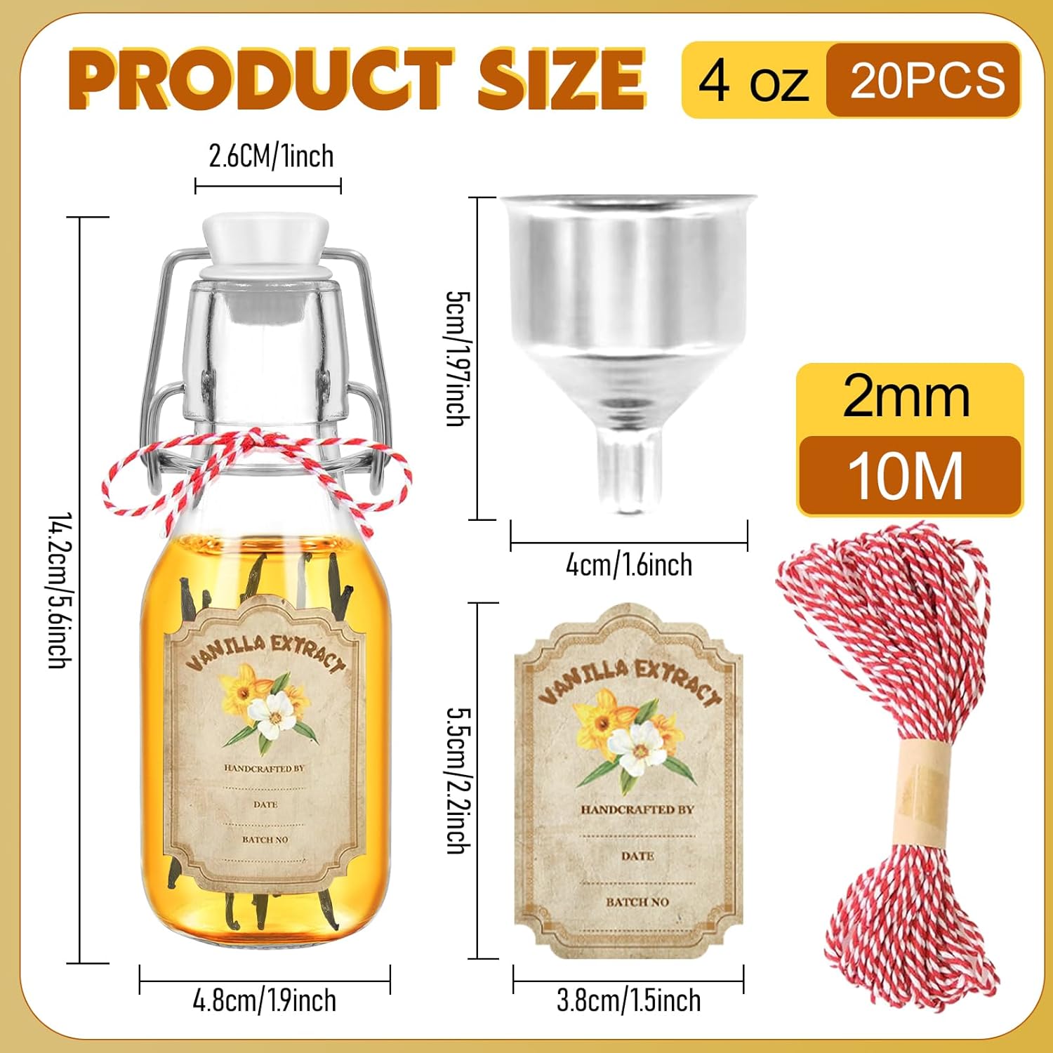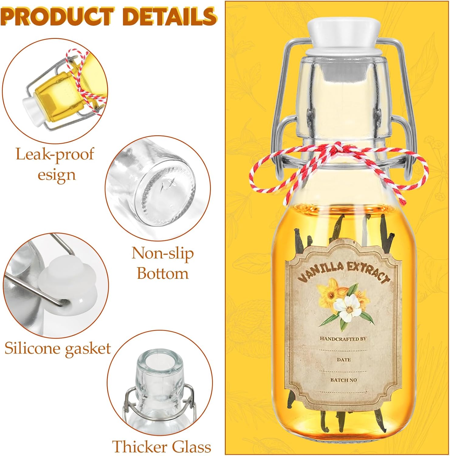 | Included Components | Swing Top Glass Vanilla Extract Bottles |