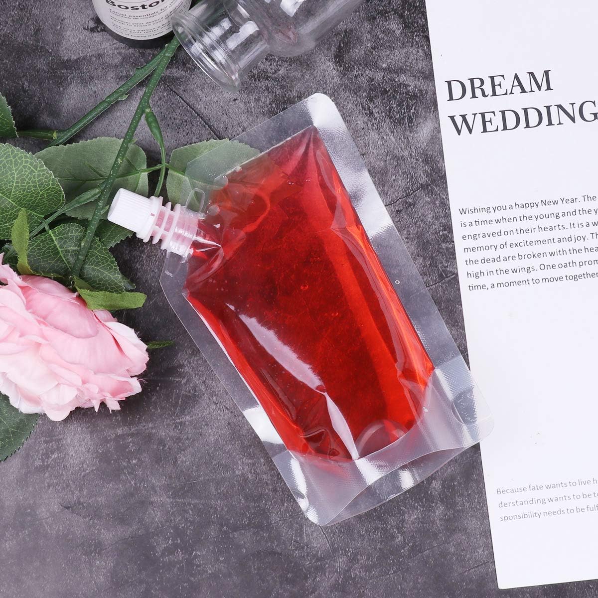 Liquor spout pouches drink bags are perfect used for bring water, beverages, wine, juices, whiskey, cocktails when camping, hiking, fishing, BBQ, or lazing by the pool. Specifications: Material: Plastic Color: Transparent Volume: 250ml & 350ml Quantity: 22 Pieces (20 Flasks, 2 Funnel) Package includes: 10 x 250ml Liquor Pouches Drinking Flasks 10 x 350ml Liquor Pouches Drinking Flasks 2 x Funnel