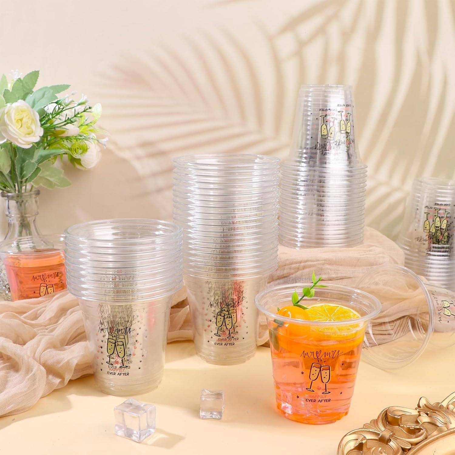 200 Pack Plastic Wedding Cups Mr and Mrs Cups 12 oz Clear Engagement Party Cups Disposable Wedding Reception Bridal Shower Drinking Cups for Home Kitchen Wedding Theme Party Favors SuppliesFeatures:These plastic cups for wedding are adorned with the printed words, 'Mr and Mrs' and 'HAPPILY ECER AFTER'; These party cups help to create a warm, romantic atmosphere for your special dayThese disposable wedding cups bulk are not only ideal for decorating your wedding, but also suitable for theme parties, birthday parties, weddings, anniversary parties, baby showers and other occasionsYou can also use them as party cups and family party cups, they can also be applied as photography props, adding more cool elements to your photosSpecifications:Material: plasticSize:3.86 x 2.24 x 3.66 inches / 9.8 x 5.7 x 9.3 cm(upper diameter x lower diameter x height)Capacity: 12 ouncesColor: Clear Plastic Wedding CupsPackage Include: 200 x Plastic Wedding CupsWarm Note: 1. Manual measurement, please allow slight errors on size.2. The color may exist a slight difference due to different screen displays.
