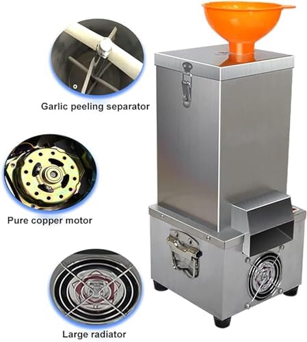 Introducing our high-efficiency Garlic Peeling Machine, specifically designed for commercial use, this machine excels at peeling dry garlic quickly and effectively. Say goodbye to tedious manual peeling and welcome a streamlined process that enhances your kitchen productivity. With a remarkable output of up to 25 kg of peeled garlic per hour, this stainless steel appliance ensures consistent results, making it an essential addition for restaurants, catering services, and food processing operations. Crafted from durable stainless steel, our garlic peeling machine guarantees longevity and easy maintenance. The user-friendly design features a secure cover to prevent any spillage, while the funnel system optimizes peeling efficiency. Simply feed dried garlic into the funnel, and let the machine handle the rest. Please note that this device is not suitable for wet or fresh garlic, which should be properly dried before use to achieve the best results. While machine-peeled garlic may experience minor surface damage, the benefits far outweigh this minor drawback, especially for those looking to save time and labor costs. Keep in mind that red garlic may have a lower peeling rate compared to other varieties. For optimal performance, inspect the peeling barrel for debris before use, and ensure the power is disconnected during cleaning or maintenance. Whether you're a professional chef or a food entrepreneur, our Garlic Peeling Machine will transform your food preparation process, saving you time and effort without compromising on quality. Elevate your culinary efficiency today with this indispensable kitchen tool!