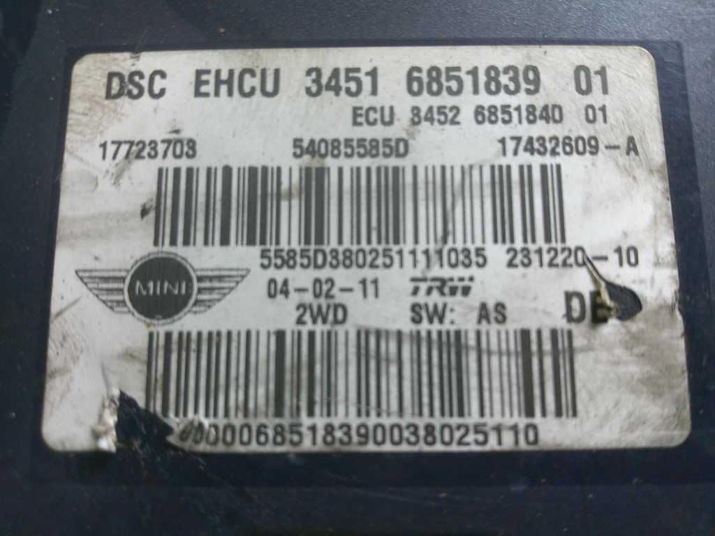 Welcome to our Store! 2011 fits Mini Cooper R56 GENUINE ABS ANTI-LOCK BRAKE PUMP 3451-6851839 6851839 Description Donor Vehicle VIN: Model: Year: 0 Mileage: 0 (0 = not available or unknown) Stock Number: QB401 Store Number: 1 Part Detail Part Grade: Part Category: U Part Placement: Notes: 34516851839 This part will fit these makes and models with these options CLUBMAN 11 Assembly; thru 2/11 COUNTRYMAN 11 Base, thru 2/11 COUNTRYMAN 11 S model, FWD, thru 2/11 fits Mini Cooper 11 Assembly; thru 2/11