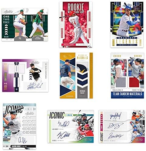 Each sealed box contains 2 packs of 10 cards each in a 100 card set. >>> Each box contains TWO Memorabilia cards and FOUR Autograph cards. Parallel sets: Silver (#’d to 199), Spectrum (Blue, Red > #’d to 99, Gold > #’d to 10 & 1-of-1 Black), and 1-of-1 Printing Plates.Inserts: Heroes / Legends / Introductions / One-Two Punch / Rookie Round Up / Unsung Heroes (all previous inserts > parallels: Blue, Silver > #'d to 99, Purple > #'d to 25 & 1-of- Black), Rookie Baseball Material Signatures (#'d to 149, parallels > #'d to 125 or less), 500 HR Club Bats, Heroes Materials (#'d to 99 or less, parallels > #'d to 49 or less; Signatures > #'d to 99 or less, parallels > #'d to 25 or less), Rookie Materials (parallels > #'d to 99 or less), Grip It-N-Rip It (#'d to 99 or less, parallels > #'d to 49 or less), Hall Bound Materials (parallels > #'d to 49 or less), Iconic Ink Materials (#'d to 99 or less, parallels > #'d to 25 or less), Team Tandem Materials (parallels > #'d to 99 or less), Tools of the Trade 3/4/6 Swatch (#'d to 99 or less, parallels > #'d to 49 or less), Rookie Baseball Material Signatures (#'d to 149, parallels > #'d to 125 or less), Baseball Material Signatures (#'d to 149 or less, parallels > #'d to 125), Ink (#'d to 99 or less, parallels > #'d to 25 or less), Jersey Signatures (#'d to 199 or less, parallels > #'d to 99 or less), Iconic Ink (#'d to 99 or less, parallels > #'d to 25 or less; Dual Materials > #'d to 49 or less, parallels > #'d to 25 or less; Duals > #'d to 49 or less, parallels > #'d to 10 or less; Triples > #'d to 25 or less, parallels > #'d to 15 or less), Tools of the Trade 2/3 Swatch Signatures (#'d to 149 or less, parallels > #'d to 99 or less), Tools of the Trade 4 Swatch Signatures (#'d to 199 or less, parallels > #'d to 149 or less), and Tools of the Trade 6 Swatch Signatures (#'d to 299 or less, parallels > #'d to 199).