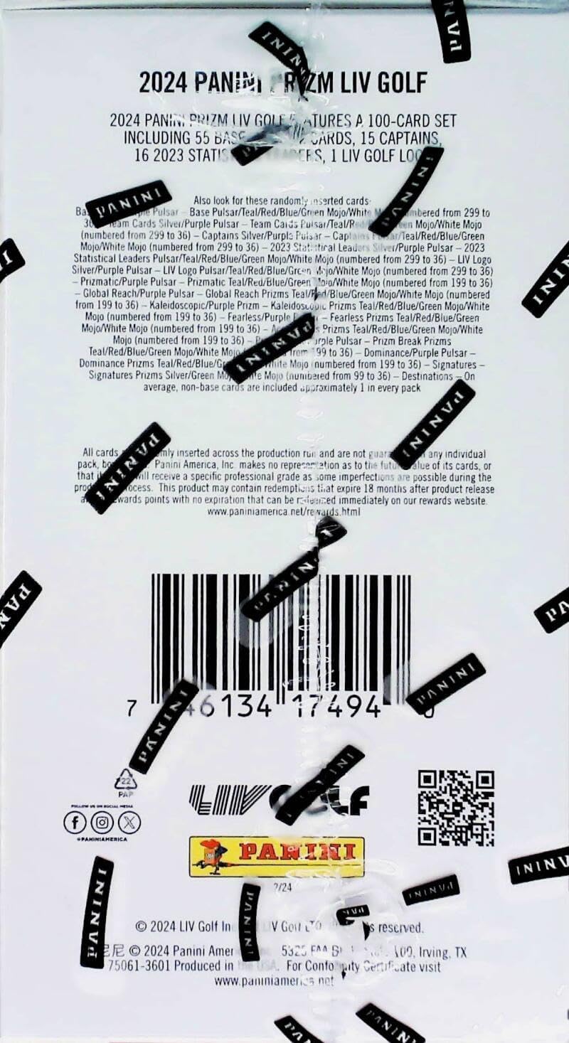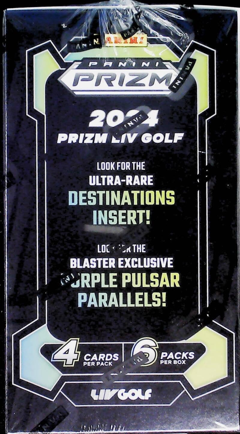 2024 Panini Prizm LIV Golf Debut Edition Factory Sealed Blaster Box 6 Packs of 4 Cards. Look for Blaster Exclusive Purple Pulsar Parallels. Look for the Ultra-Rare Destinations Insert. See Scans for More Details on Possible Hits.