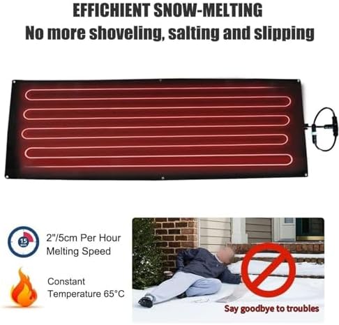 Ensure safety for you and your loved ones this winter with our upgraded snow and ice melting mats, designed to minimize slips, trips, and falls that account for over 1 million incidents annually in the United States and Canada. **2024 Product Enhancement Highlights:** 1. **Enhanced Durability:** Our snow melting mats are now 26% heavier, featuring a thicker construction that significantly extends their lifespan while improving resistance to wear and tear. 2. **Superior Anti-Slip Performance:** The innovative convex willow leaf pattern combined with a W texture provides exceptional grip, effectively reducing the risk of slipping on icy surfaces. 3. **Advanced Safety Design:** The newly designed line connection interface ensures a more secure and stable connection, enhancing overall safety during use. **Product Details:** - **Name:** Ice and Snow Melting Mat - **Material:** Premium Rubber - **Power:** 160W±10% **Package Contents:** - Snow Melting Mats - Connection Cables - Power Cord If you need a different size, simply reach out to us, and we would be happy to provide a custom-sized mat tailored to your specific needs. Invest in our snow melting mats to eliminate the hazards associated with ice and snow. Made from high-quality rubber and equipped with efficient heating power, our mats are the ultimate solution for a safer and worry-free winter experience. Don’t let winter weather compromise your safety—choose our reliable snow and ice melting mats today!