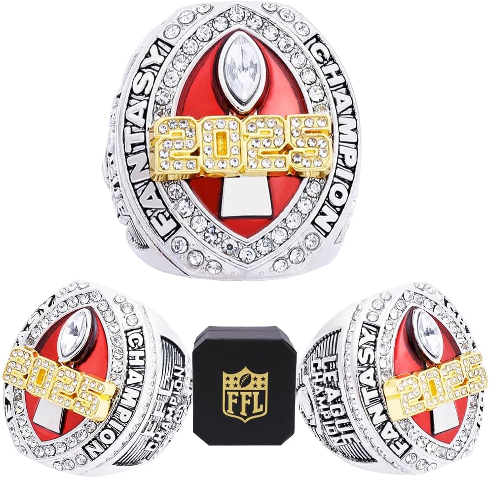 Fantasy Football Championship Ring 2025 | Heavy FFL Champion Ring | Gold Silver Tone Plated Award Trophy for Fantasy Football League Winner