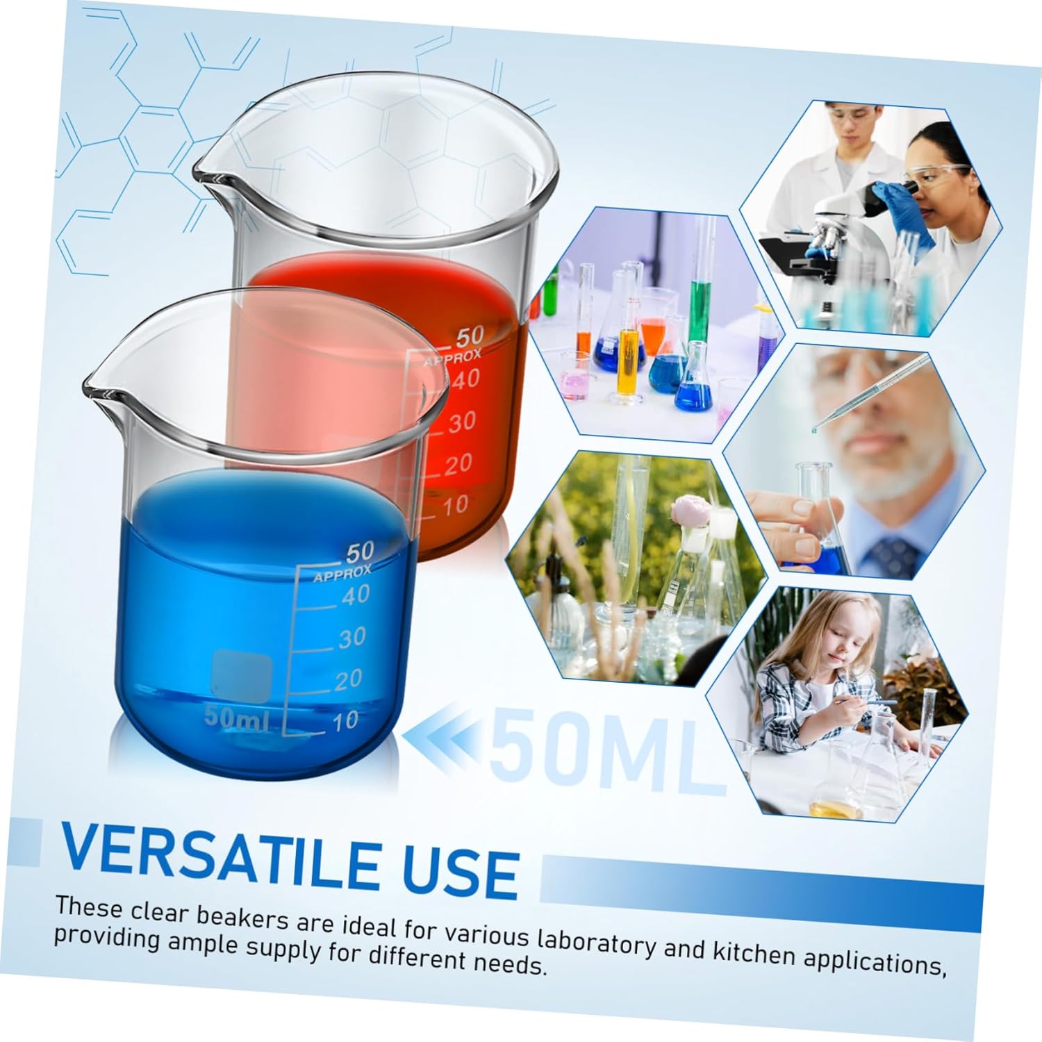 Package List 20 x beakers Features -Wide application: Ideal for use in laboratories, kitchens, classrooms and other settings, these glass beakers are versatile tools for measuring and mixing liquid precision measuring beaker -Bulk pack: This set includes a large number of beakers, providing a sufficient quantity for various experiments and cooking needs graduated cylinder -Sturdy construction: Made of selected glass, these graduated beakers withstand high temperatures and are less prone to breaking, offering reliable performance spouted beaker -Size:6.50X5.20X5.20cm/2.55X2.04X2.04in liquid measuring cups glass -Color:Transparent glass beakers measuring cup -Accurate markings: The clear graduated markings on the glass beakers allow for precise measurement of liquids, ideal for scientific experiments science mug -Highly clear: The clean and transparent appearance of our spouted beakers enhances the overall visual presentation and professionalism of your work chemistry beaker -Material:Glass beaker cupsGoods Informationspecimen cup Our glass beakers are essential laboratory supplies, designed to provide accurate measurements every time.accurate measurement beaker Whether you're conducting experiments or need precise measurements in the kitchen, these beakers are a reliable choice.laboratory glassware The clear beakers are heat safe and feature a spout for easy pouring