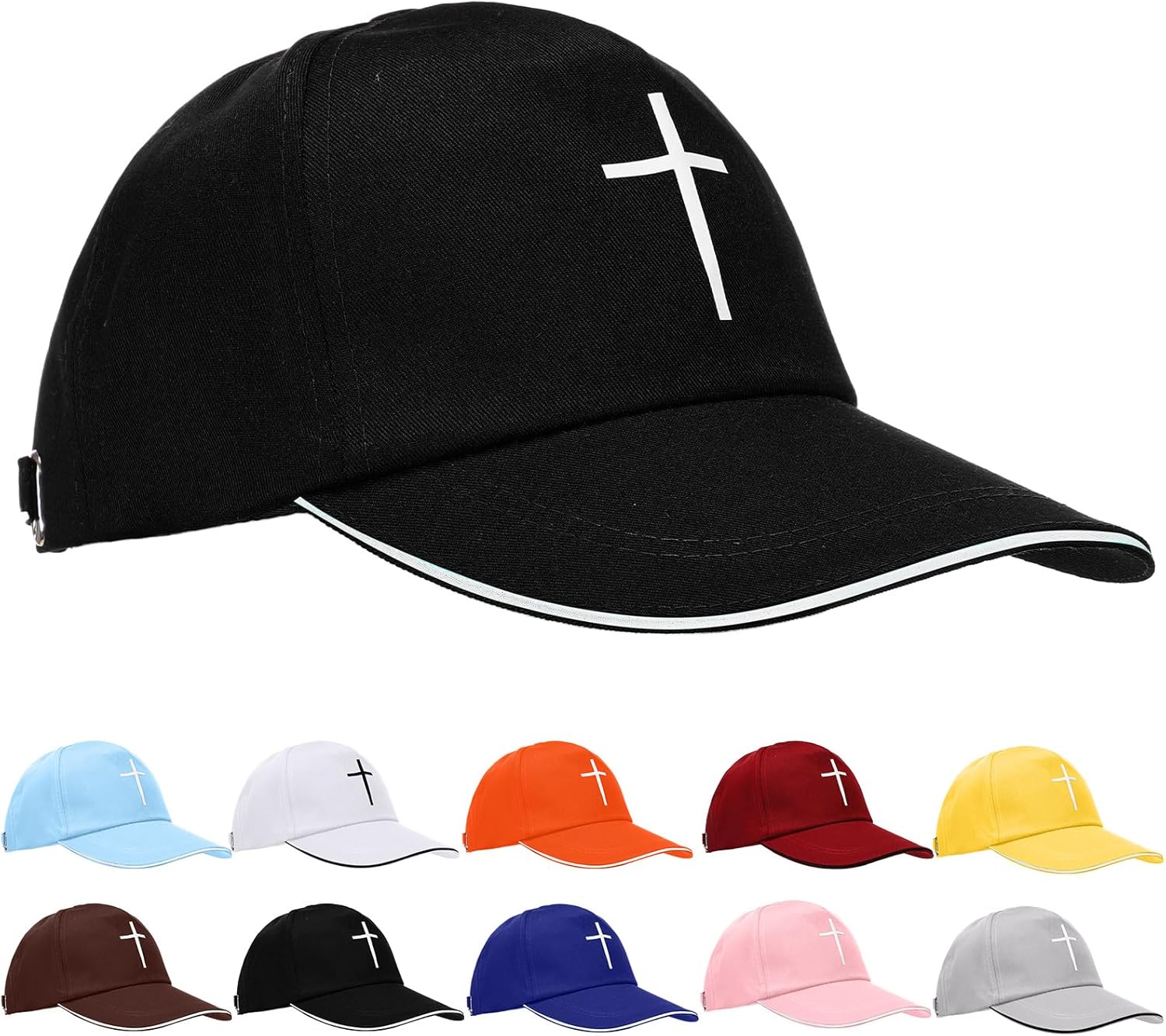 Features: Cute Design: Featuring a simple yet impactful cross design, these caps are both fashionable and meaningful. Their aesthetic appeal makes them a cute accessory that can be easily paired with casual wear, allowing you to express your beliefs without compromising style. Nice Gift Choice: These cross caps serve as a thoughtful gift choice for anyone looking to share their faith or for those who appreciate unique fashion statements. This baseball cap is available in a variety of colors, ensuring there's a style that suits everyone. Specifications: Material: polyester cotton Color: white, black, royal blue, coffee, orange, light blue, pink, yellow, gray, burgundy Size: about circumference: 56-62cm, brim: 9cm, body: 12cm Package includes: 20 X Baseball Cap Notes: Manual measurement, please allow slight errors on size. The color may exist a slight difference due to different screen displays