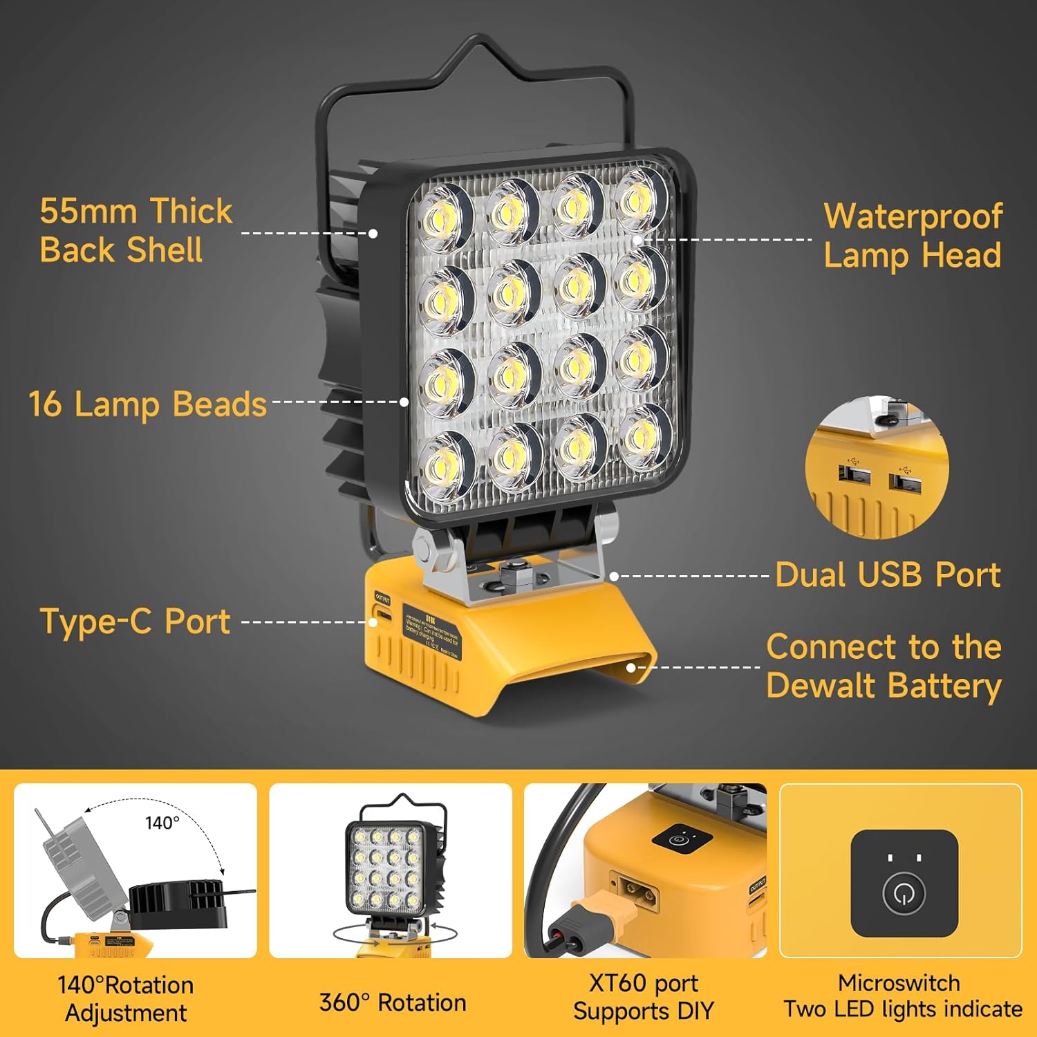 20V to 12V Step Down Converter for Power Wheel Battery Adapter+LED Work Light