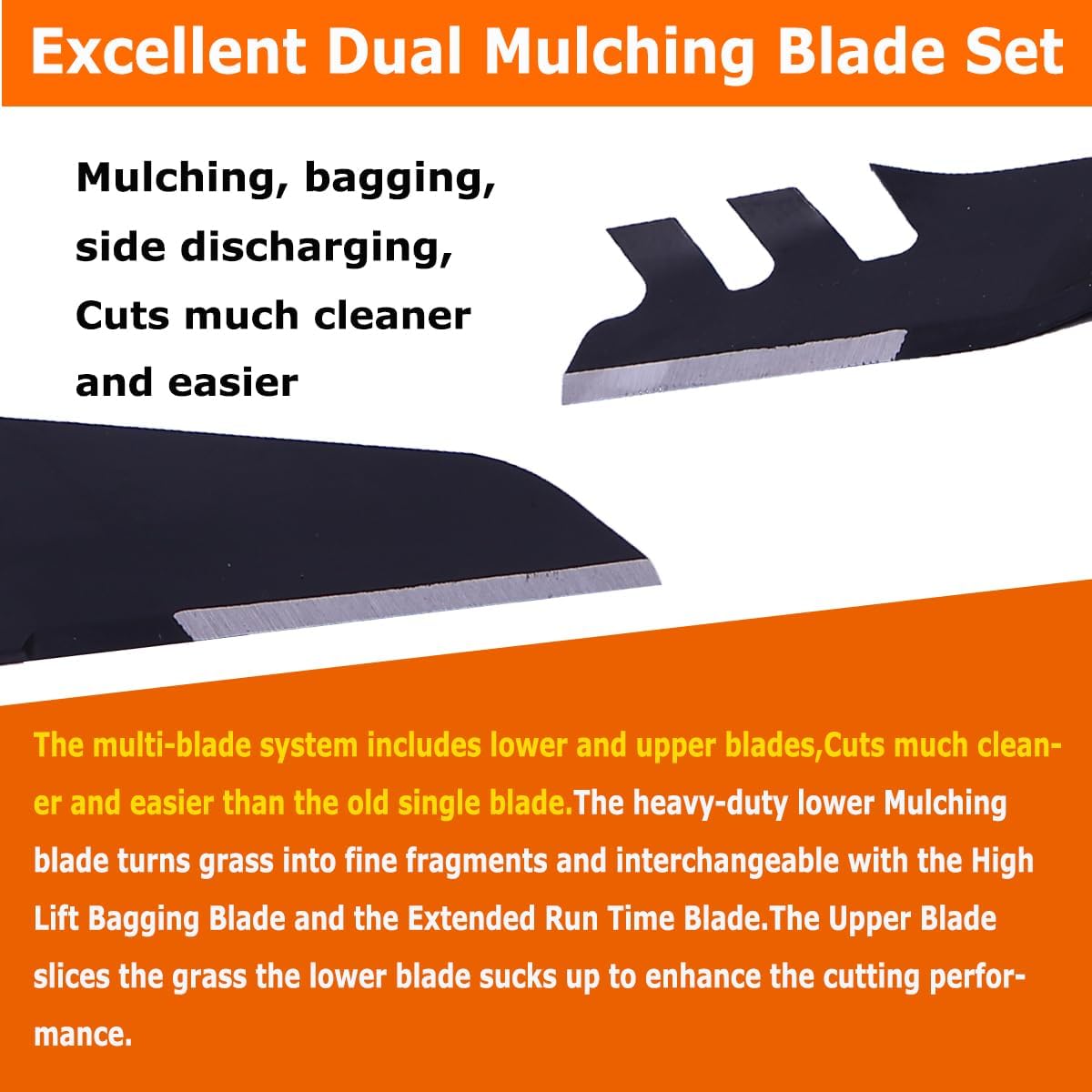 AB2101D sharpened mulching blade set could make your garden management easier.No need for sharpening.Double the cutting speed,Cut grass much cleaner and easier.