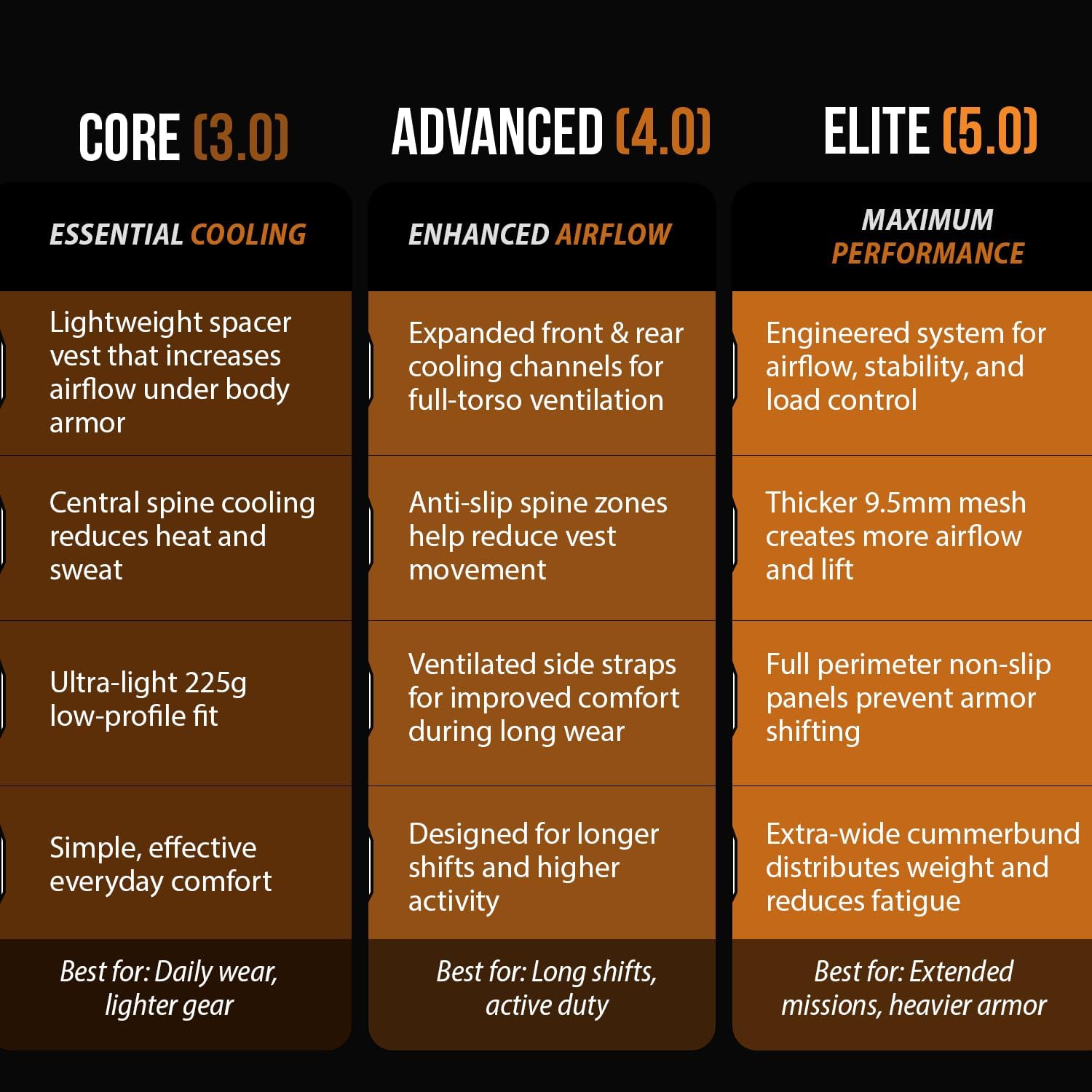 Maxx-Dri Vest 5.0, the latest iteration of this cooling vest, introduces several new features aimed at enhancing functionality and comfort. This new model includes removable straps, extended wings on the sides, grip material on the front and back, thicker material for increased space and separation, and a larger honeycomb weave design.
