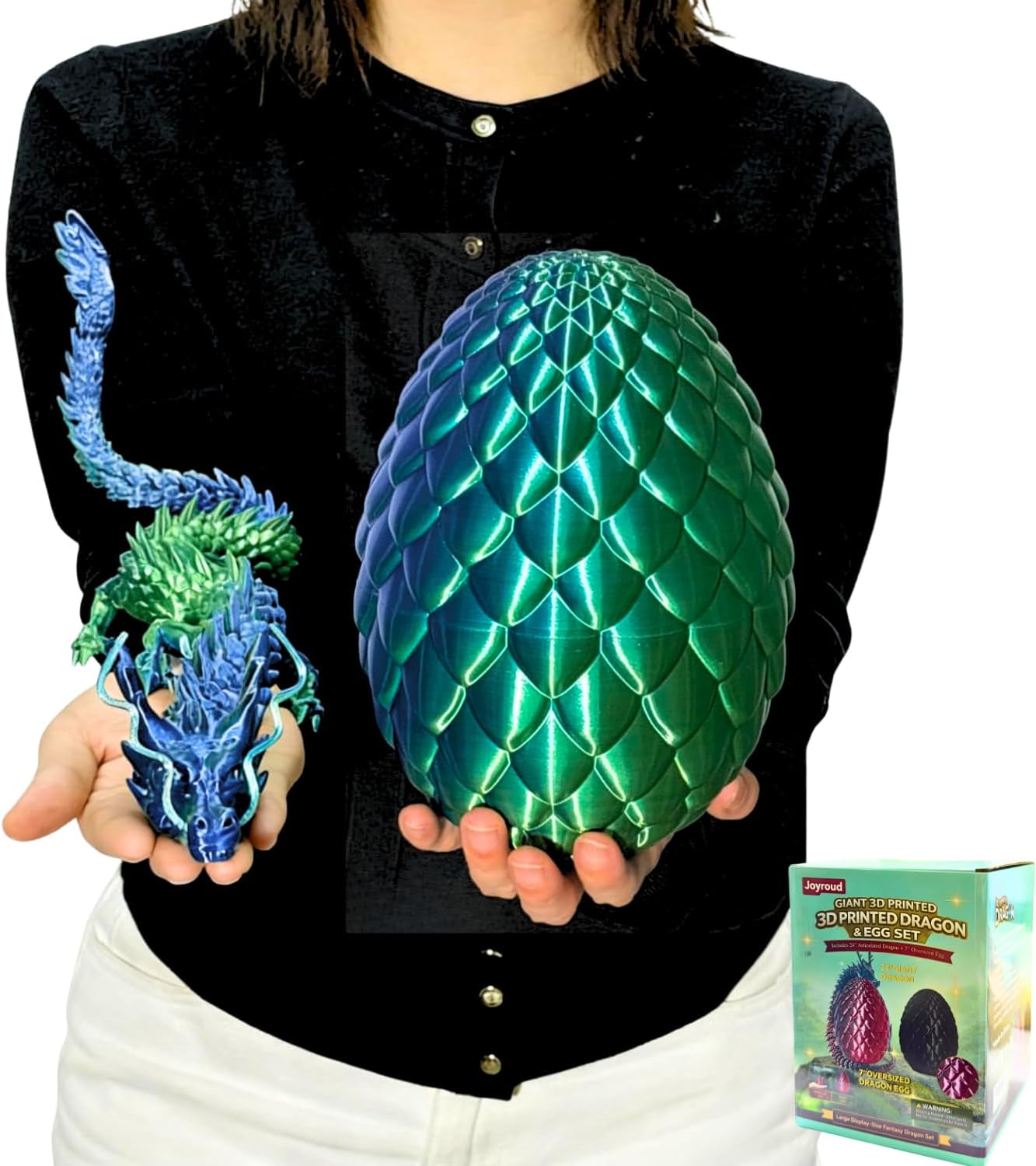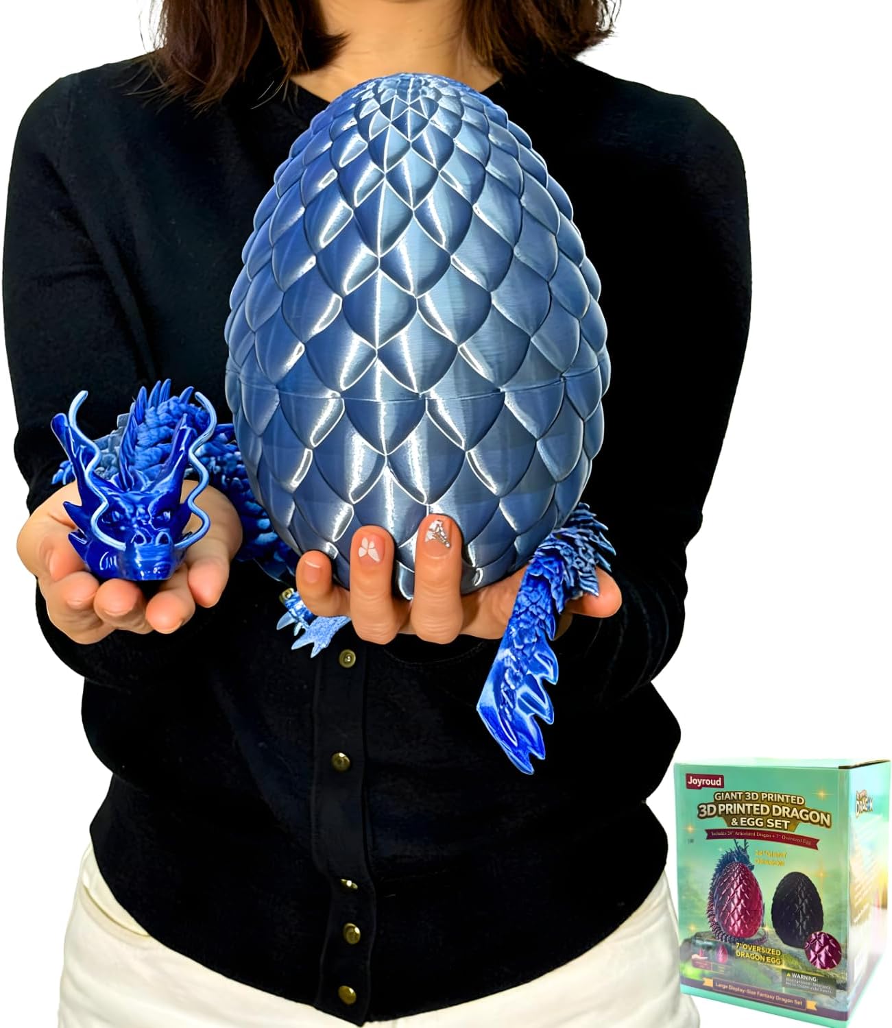 Celebrate Easter and beyond with our Extra Large 3D Printed Dragon Egg! This oversized 7.1-inch dragon egg contains a 23.6-inch articulated dragon inside, offering a magical unboxing experience that's perfect for all ages. Whether for Easter baskets, egg hunts, or as a festive centerpiece, this dragon egg brings both wonder and excitement to every celebration.The egg itself is the star, beautifully designed to open and reveal the Chinese dragon inside, combining the thrill of discovery with hands-on interactive fun. Twist, coil, and pose the 3D dragon to display it anywhere—on a desk, shelf, or table—as a fantasy toy that sparks imagination and storytelling. With its flexible joints, this dragon offers endless dynamic poses for play and display.Beyond play, this dragon egg doubles as a fidget toy and collectible figurine, ideal for stress relief, creative play, and home decoration. Crafted from high-quality, eco-friendly PLA, it's safe, durable, and non-toxic, making it perfect for kids, teens, and adult collectors alike.Whether for Easter, birthdays, or holiday gifting, this dragon egg makes a unique and memorable gift that surprises, delights, and inspires. Perfect for kids 8-12, teens, and adults who love mythical creatures, dragons, and whimsical décor. Place it in an Easter basket, use it as a decorative piece, or gift it for an unforgettable experience.Make this Easter (or any occasion) magical with a gift that combines the joy of discovery with the fun of imaginative play—the oversized dragon egg that's as enchanting as it is fun!