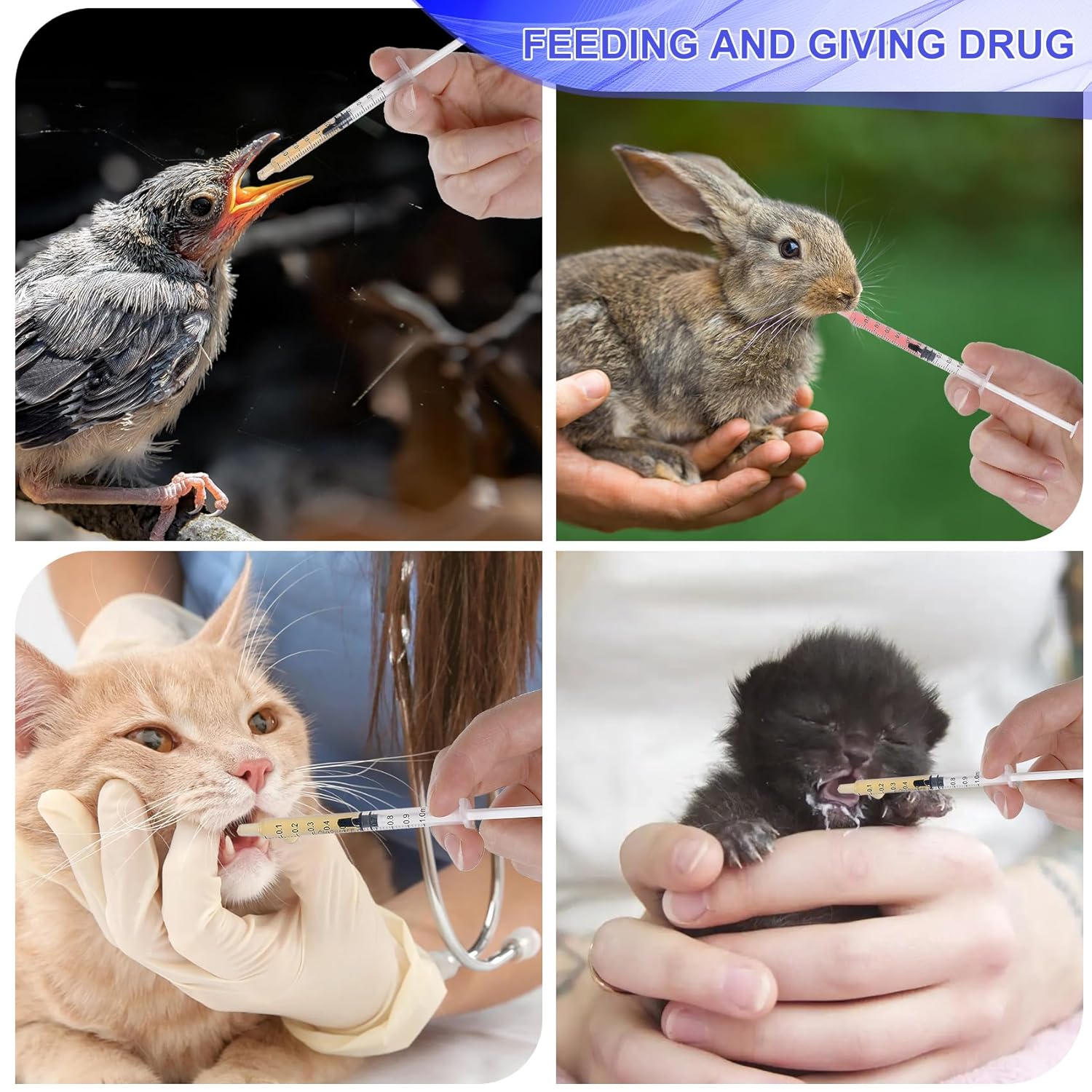 24 Pack 1ml Syringes with Caps Sterile, Individually Sealed Plastic Syringe for Precise Liquid Refilling, Measuring, and Feeding Pets or Applying Oil/Glue