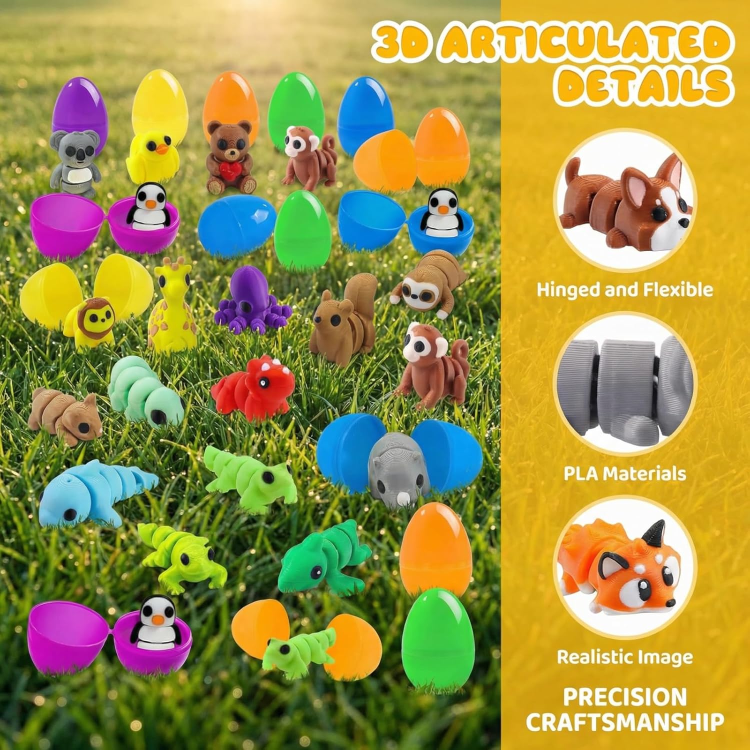 Experience the Magic of 3D Printing with Our Mystery Egg Collection! Tired of the same old plastic trinkets? Elevate your Easter tradition with [Brand] 24 Pack Prefilled Easter Eggs. We’ve combined the thrill of a mystery egg with the innovative world of 3D printing to create a gift that kids will cherish long after the holiday ends. A World of Articulated Wonders: Inside each egg lies a flexible, movable creature. Your child will love the tactile feel of an Articulated Dragon or a Mini Dinosaur. Our collection features a wide variety of species, including the Fox, Clownfish, and Lion, all designed with realistic textures and smooth-moving joints. Perfect for Every Occasion: Easter Traditions: The perfect addition to any Easter basket. Educational Play: Encourage curiosity about biology and 3D technology. Stress Relief: Great as sensory toys for kids who need to keep their hands busy. Each animal is crafted from biodegradable PLA, ensuring a safe and sustainable play experience. Give them a surprise they’ve never seen before—a 3D printed animal that truly comes to life in their hands!