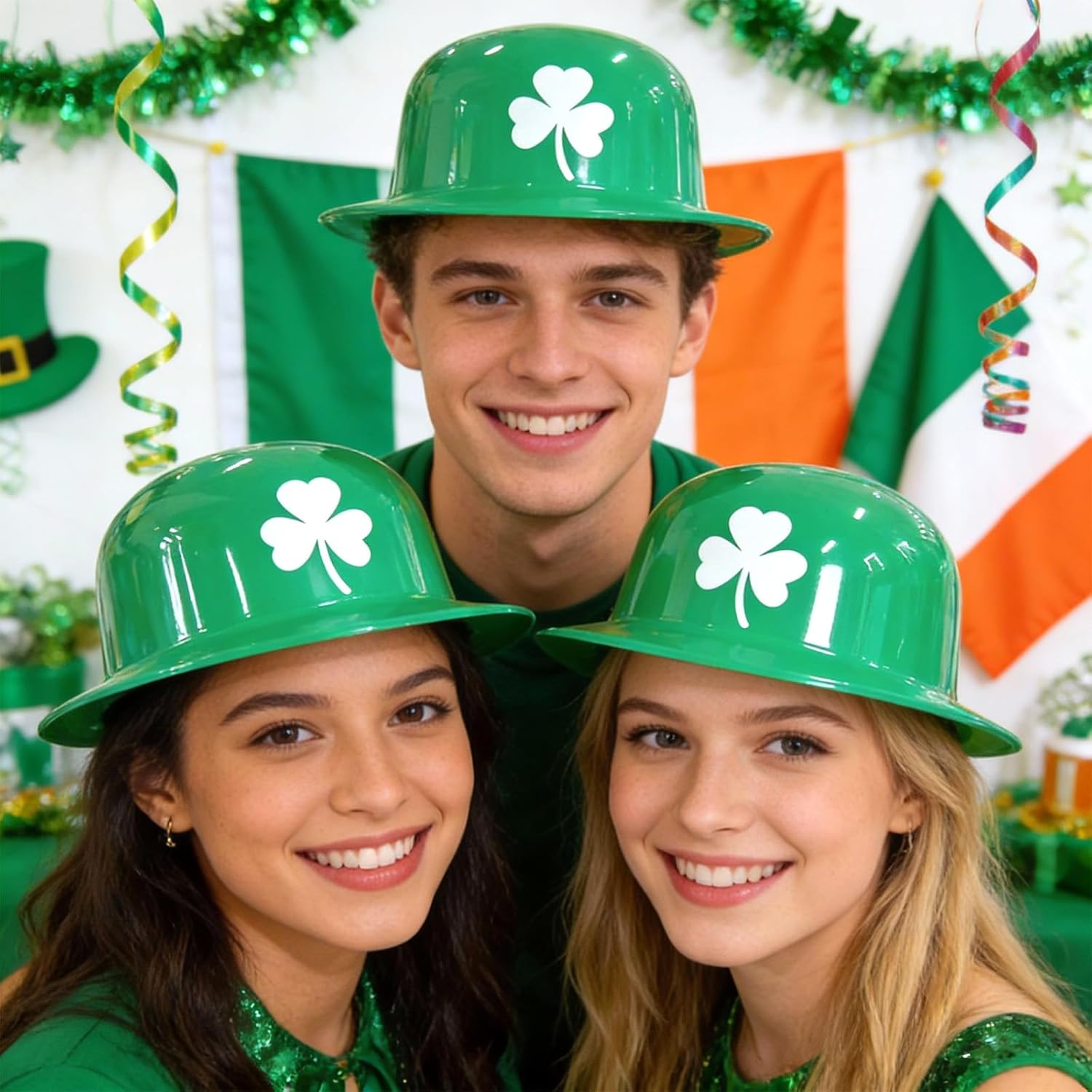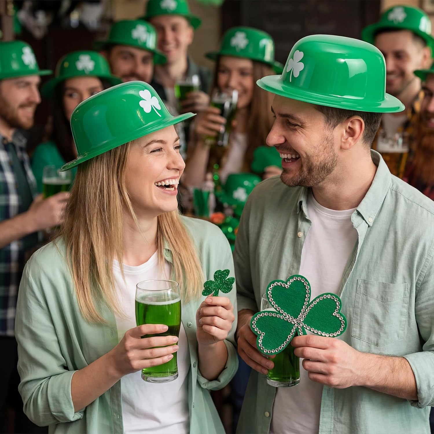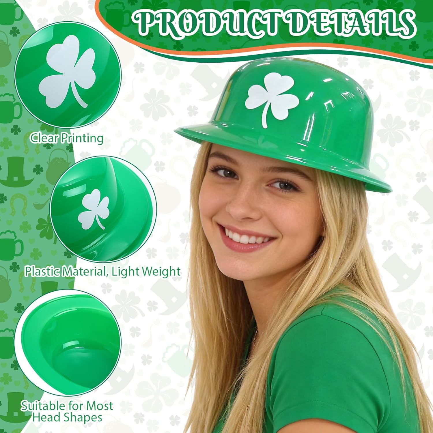 Features: Festive Green Leprechaun Design: Features a classic top hat shape in bright green with a printed band and buckle design, perfect for adding a fun and festive touch to your St. Patrick's Day celebrations Very suitable for masquerade parties: Elevate your St. Patrick's Day festivities with a 24 Pack of Leprechaun Top Hats. Specifically designed for your leprechaun costumes. Share the luck and joy with family and friends during your St. Patrick's Day celebrations, making it the perfect accessory for group gatherings and festivities Specifications: Material: plastic Color: green Size: as shown in the figure Package includes: 24 x Hats Notes: Manual measurement, please allow slight errors on size. The color may exist a slight difference due to different screen displays