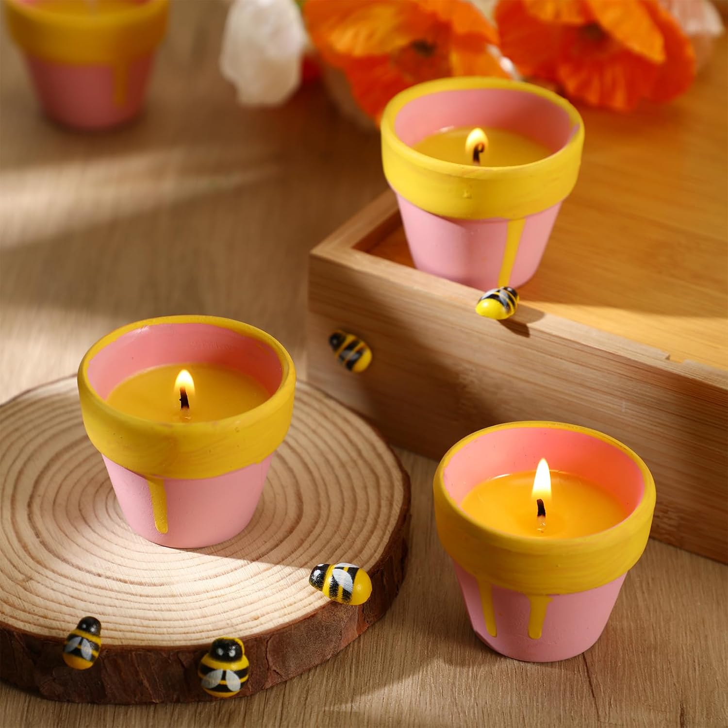 Features: The delightful design and quality craftsmanship of these honey jars enhance the atmosphere of any event. They not only serve as beautiful decorations but also create memorable experiences that leave a deep impression on your guests This set combines functionality and aesthetics, allowing you to express appreciation and love through well-thought-out gifts. The combination of the honey jar, organza bag, and thank you card conveys a heartfelt message, making it an ideal gift for friends and family who deserve a little sweetness in their lives. Specifications: Material: ceramic, paper, waxColor: multicolorSize: Honey jar: about 1.97 x 1.57 inches/ 5 x 4 cmThank you cards: 2.95 x 2.95 inches/ 7.5 x 7.5 cmOrganza bags: 4.72 x 3.54 inches/ 12 x 9 cmPackage includes: 24 x Cute Bee Theme Pot Candle Set24 x Thank you cards24 x Organza bagsNotes: Manual measurement, please allow slight errors on size. The color may exist a slight difference due to different screen displays.
