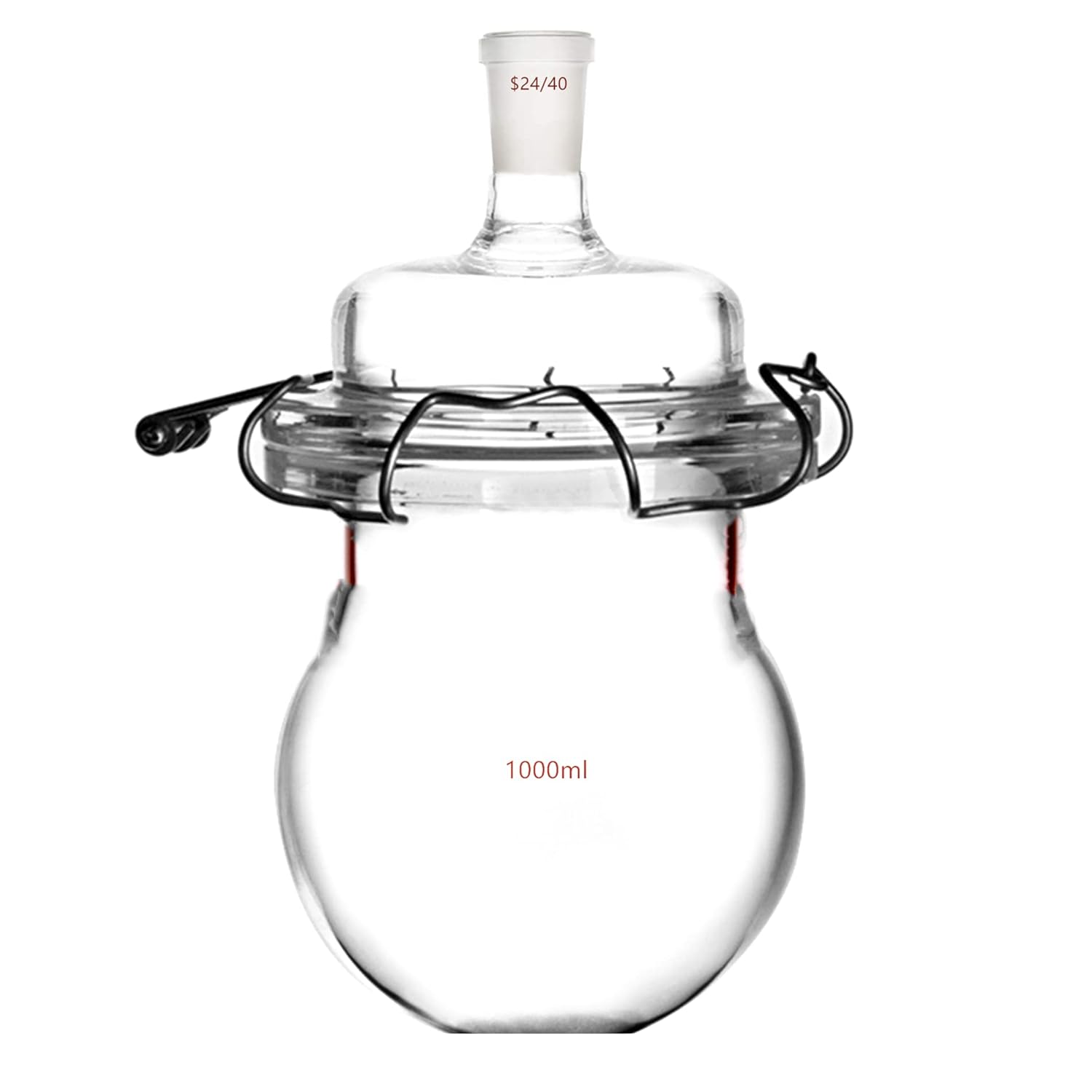 Deschem 24/40 Glass Reactor Single Neck Flat Bottom Lab Reaction Flask Vessel W/1-Neck Lid and ClampMade From Borosilicate Glass 3.3.24/40 Glass Ground Joint Capacity 500ml 1000ml 2000ml 3000ml 5000ml 10000ml AvailableFlat BottomStainless Steel ClampOuter DIameter of The Flange is 150mm
