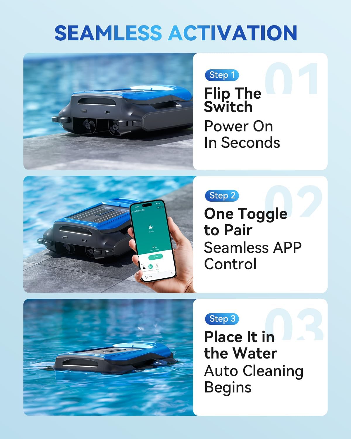 | Special Feature | โค APP Control Solar Pool Skimmer, โค Automatic Obstacle Avoidance Robotic Pool Skimmer, โค Self Propelled Pool Surface Skimmer Robot, โค Solar Pool Skimmer Robot For all pools |