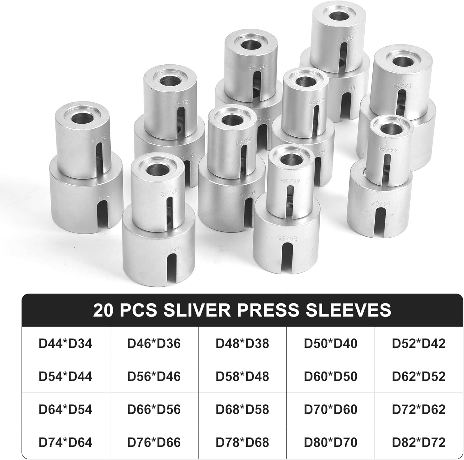 20 Pressure Sleeves with Control Cut Inside diameter: 34, 36, 38, 40, 42, 44, 46, 48, 50, 52, 54, 56, 58, 60, 62, 64, 66, 68, 70, 72mm Outside diameter: 44, 46, 48, 50, 52, 54, 56, 58, 60, 62, 64, 66, 68, 70, 72, 74, 76, 78, 80, 82mm M16 ball bearing spindle; M14 ball bearing spindle; M12 ball bearing spindle; M10 ball bearing spindle;