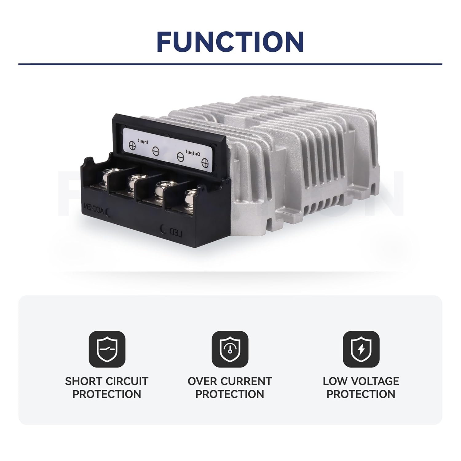 Specifications: Input Voltage: DC 24V nominal, tolerates input range of 18V - 36V Output Voltage: DC 12V Output Current: 60A Output Rated Power: 720W Temperature Range: -40℃—+55℃ Package list: 1pcs DC power converter Wide application: Can be used for electromotor telecommunications, logging vehicles, forklifts, etc The converter is equipped with intelligent protection for over-current, over-load, low-load, short-circuit, and over-heat conditions Note: Maintain the original placement of the input and output interfaces Contact us if you have any questions, comments or issues